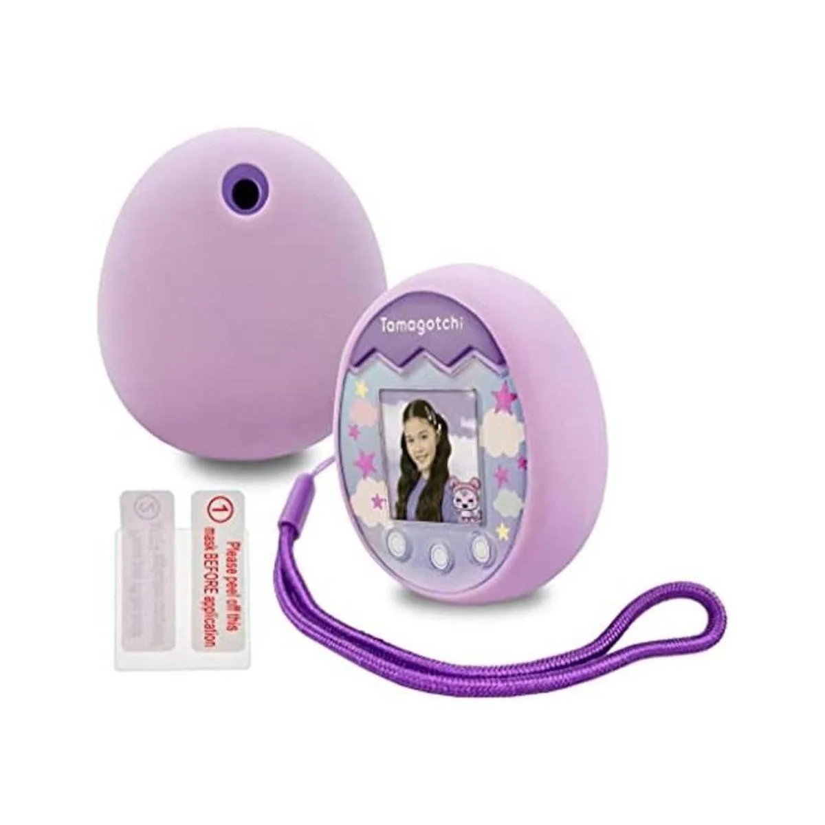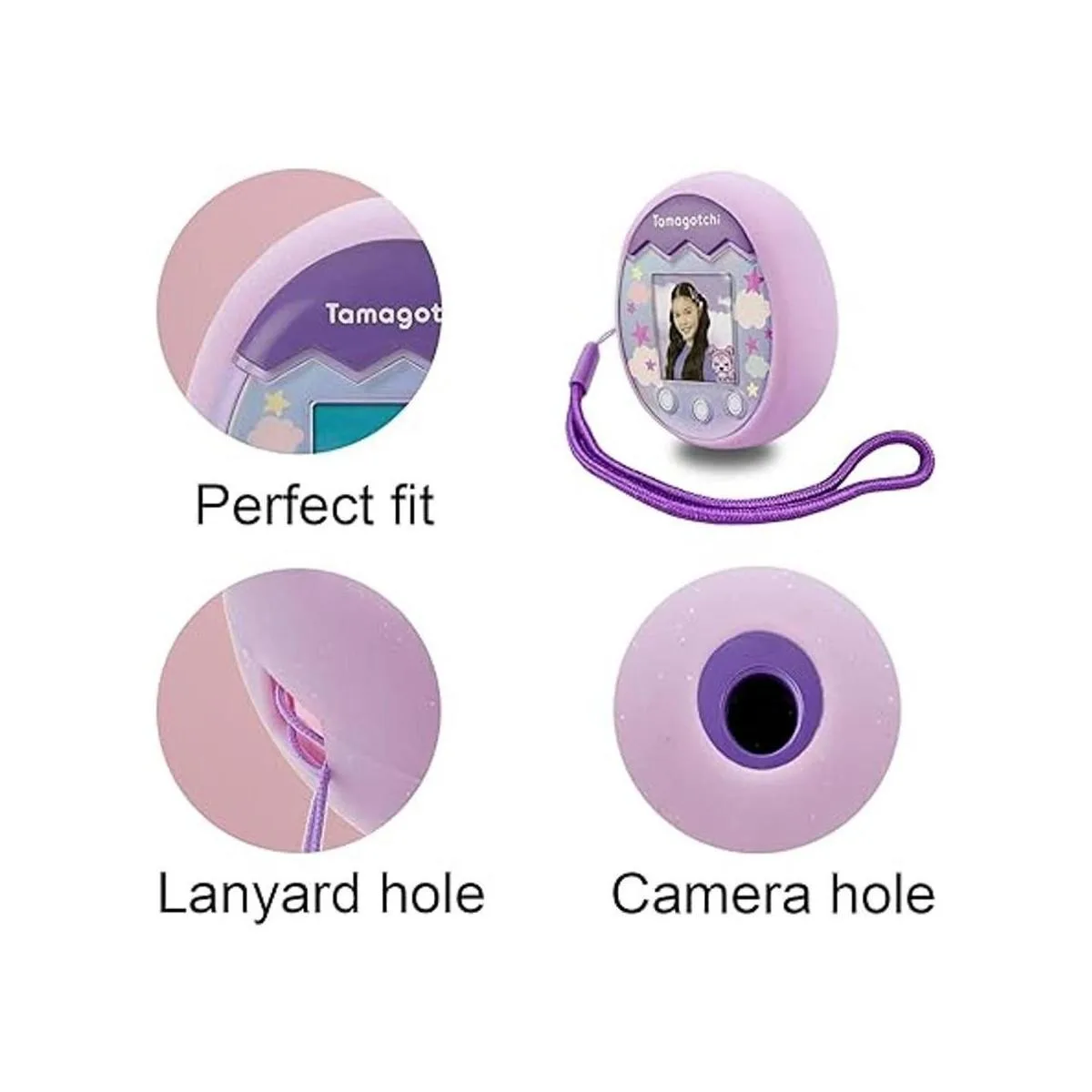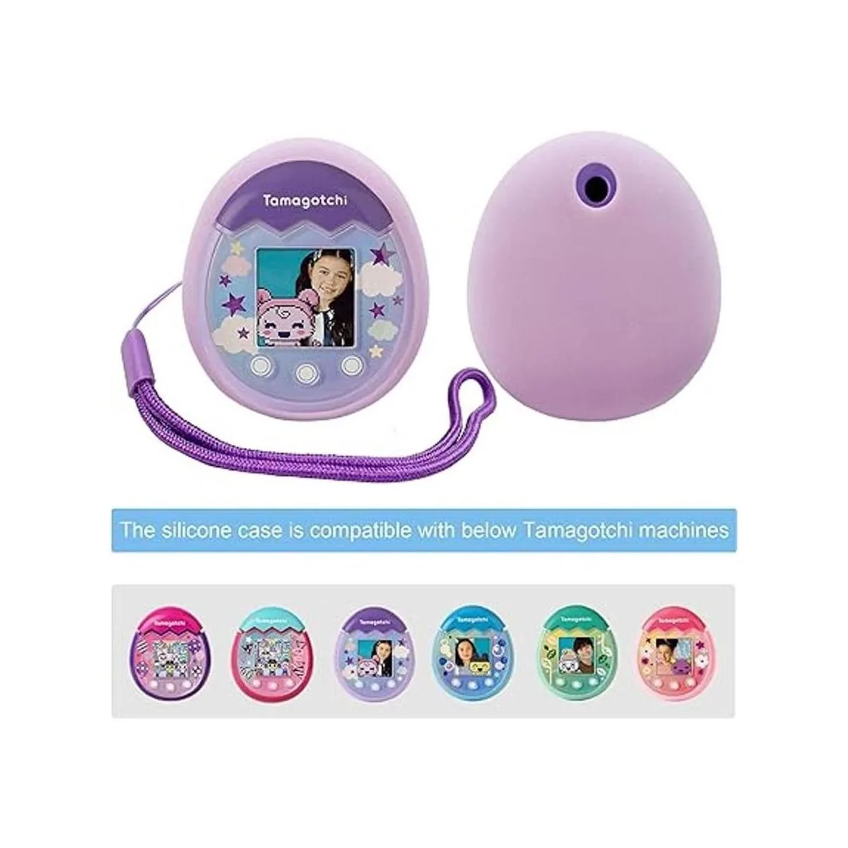 LeoTube Cubierta de silicona para carcasa de silicona, cordón y protector de pantalla para máquina interactiva Tamagotchi Pix con cámara, accesorio electrónico para mascotas Tamagotchi Pix morado