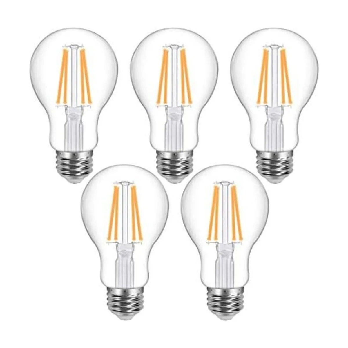 Lepro Bombillas LED vintage, bombilla de filamento regulable, 7.5 W 800 lúmenes, equivalente a 60 W, blanco cálido de 2700 K, vidrio transparente clásico, forma A19, base E26, paquete de 5