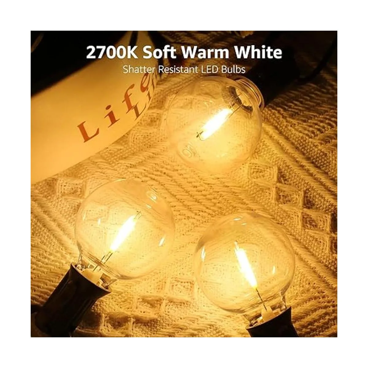 Lepro Cadena de luces para exteriores, luces colgantes de 50 pies para patio con 25 bombillas LED Edison, impermeables, G40, luces de bistró, cadena de iluminación para patio trasero para cubierta, pérgola, porche, jardín, cenador, café