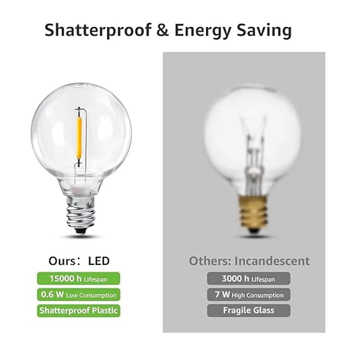 Shatterproof Outdoor Globe String Lights That Still Looks Classy. The acrylic globes are as clear as glass. And the impactresistant decorative filament LED bulbs wont break when dropped, making them safe around children and pets.