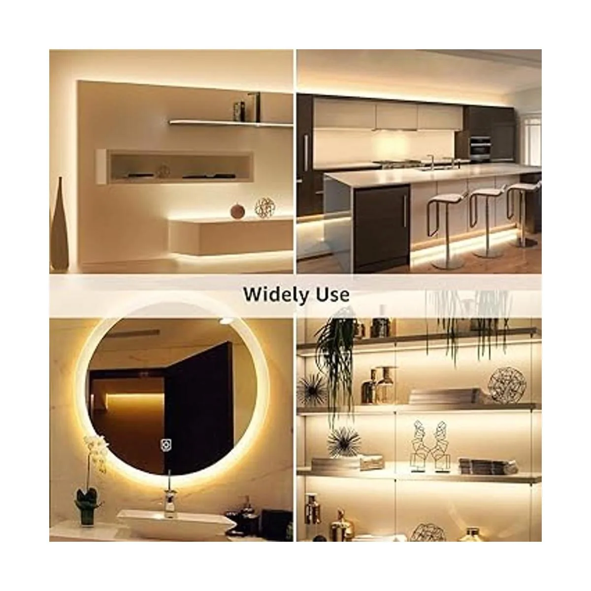 Ampliamente utilizado: ilumina en cualquier lugar. Puedes decorar e iluminar tu cocina, sala de estar, dormitorio, fondo de TV, espejo, puerta, pared, escaleras, techo, armario, etc.