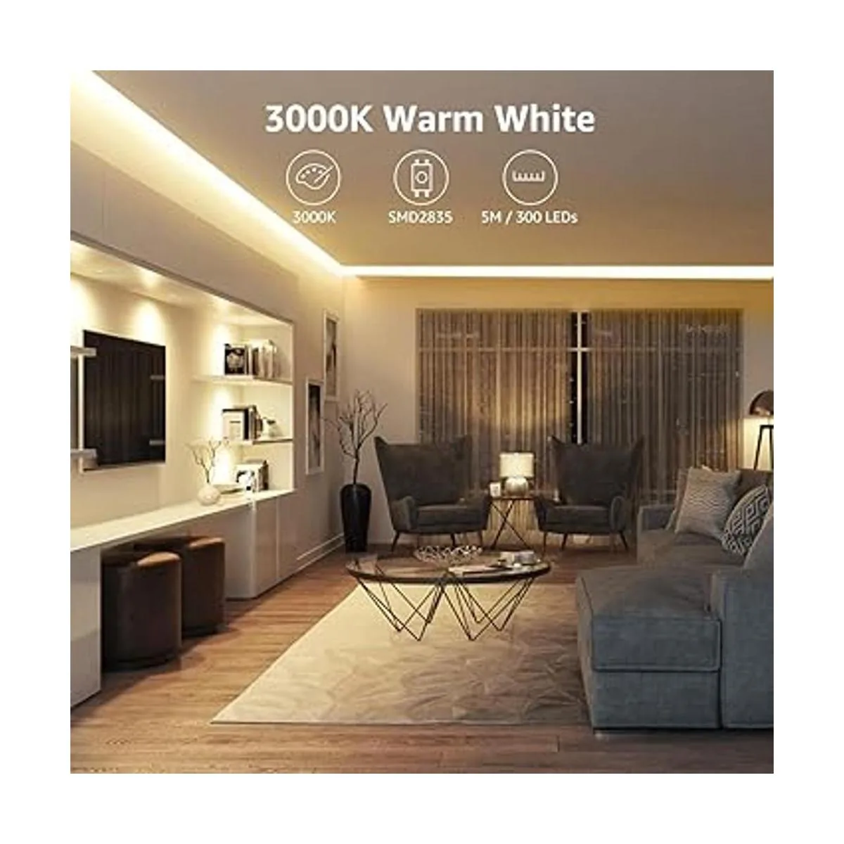 Lepro Tira de luces LED color blanco, luces de tocador regulables de 16.4 pies, 3000 K, luces LED superbrillantes, 300 LED SMD 2835, fuerte adhesivo 3M, adecuado para el hogar, cocina, debajo del armario, dormitorio, blanco cálido