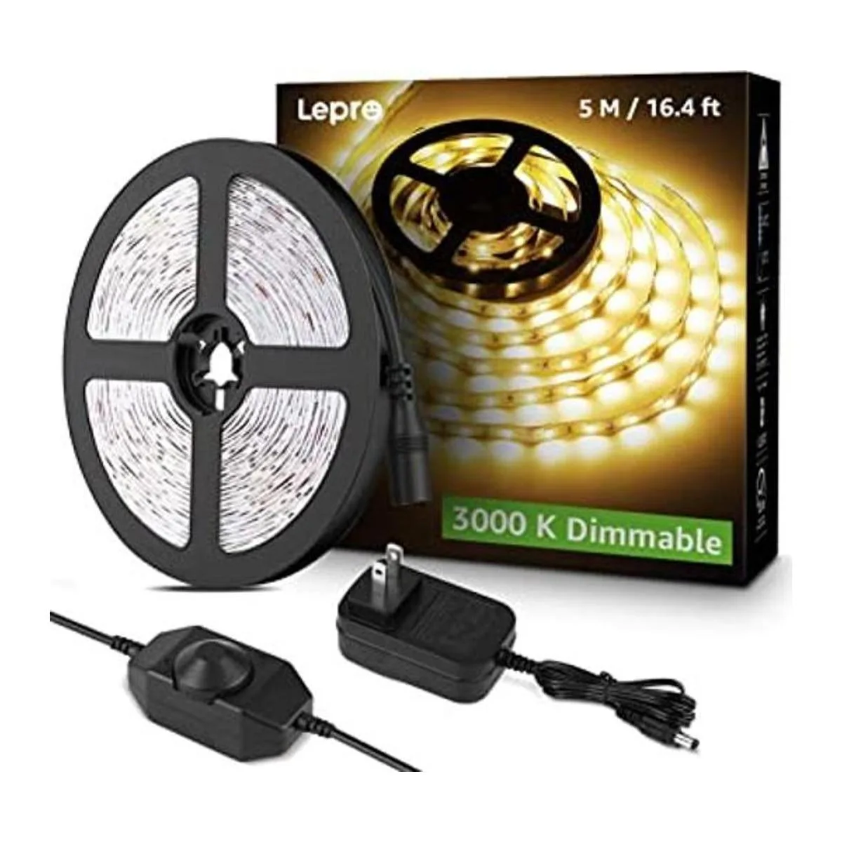 Kit estándar: incluye una tira de luz no impermeable de 16.4 ft, un regulador de intensidad y un adaptador de corriente de 1,5 A 12 V enchufe estadounidense.