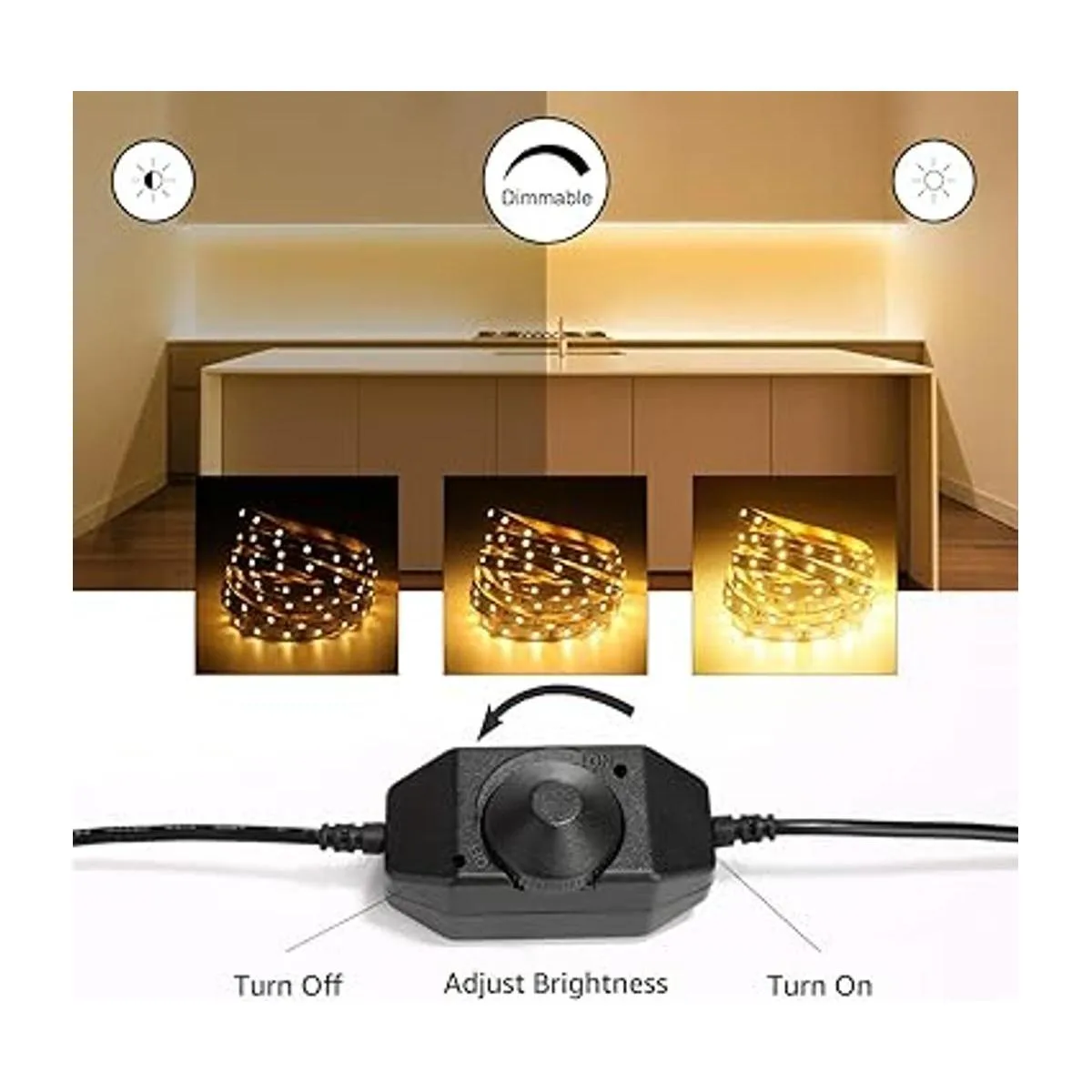 Regulable: tira LED de 16.4 pies con regulador, puede ajustar el brillo. Conveniente y ahorro de energía.