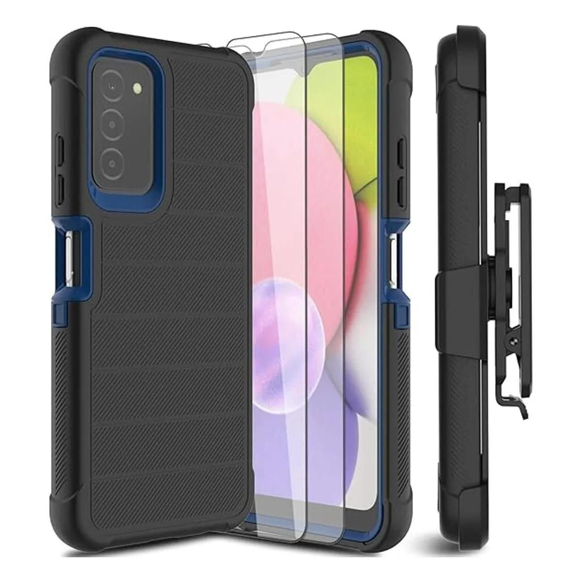 Perfecto compatible: funda para teléfono móvil inteligente con 2 protectores de pantalla de vidrio templado. Diseñado para Samsung Galaxy A03S, versión de EE. UU. de 6.5 pulgadas número de modelo: SMA037U solamente.