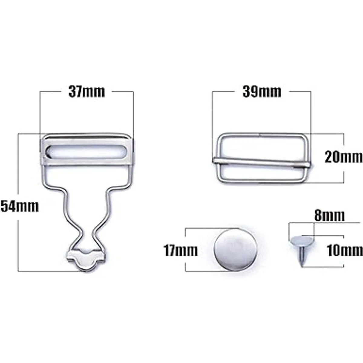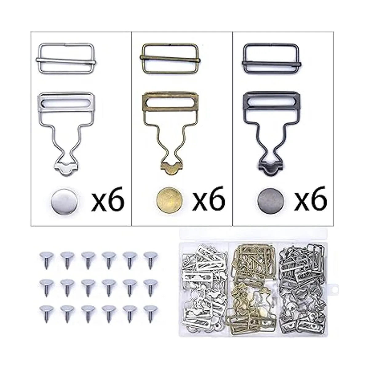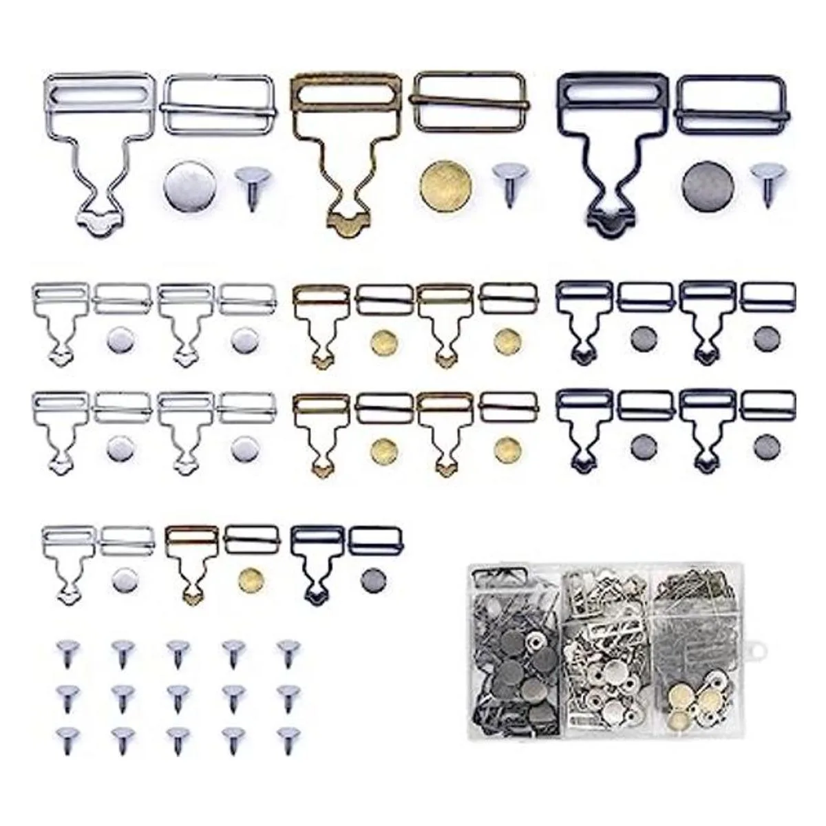 Kit de ganchos con botones: cada juego de hebillas incluye 1 hebilla de suspensión y 1 hebilla de triple deslizamiento ajustable.