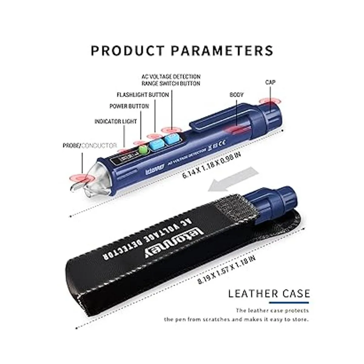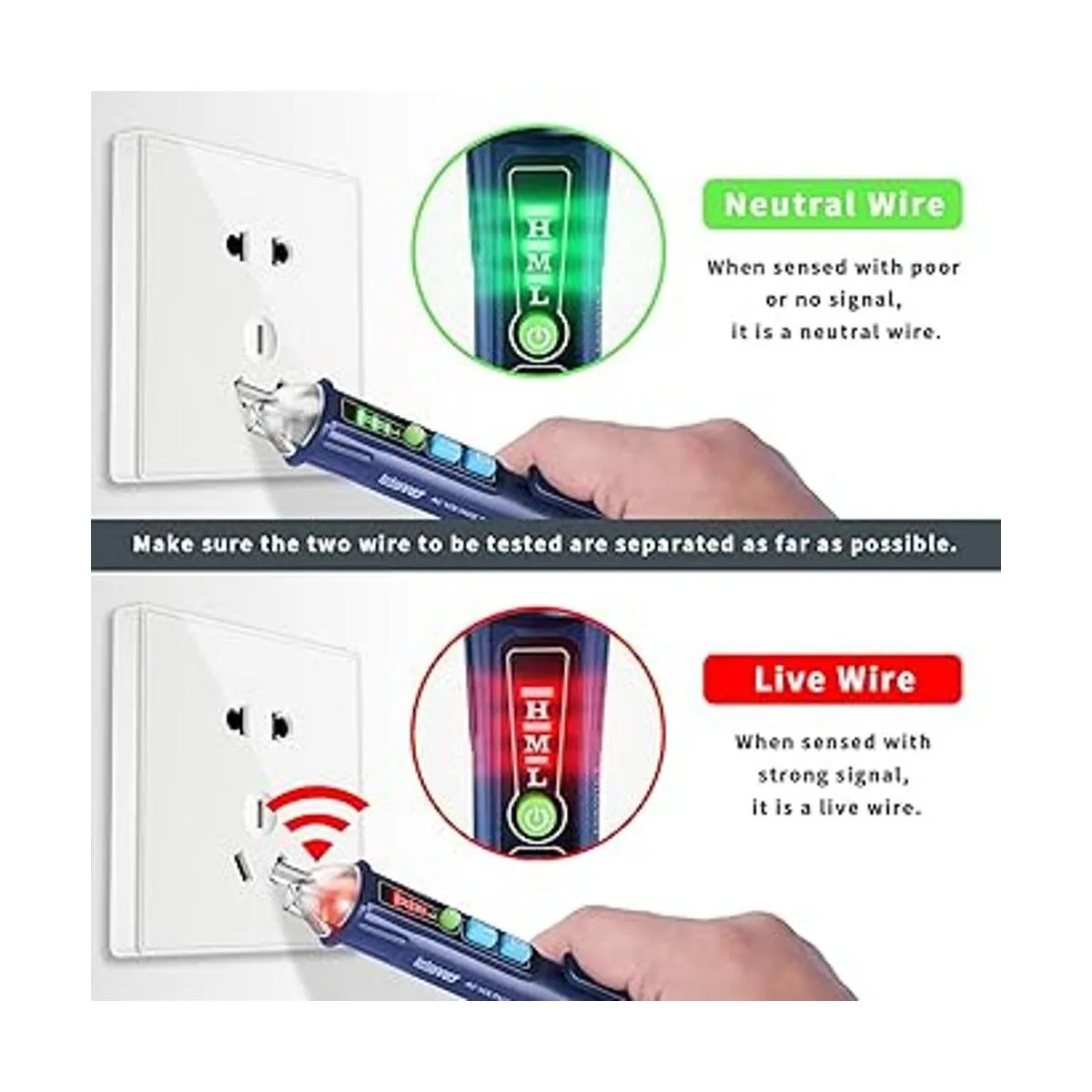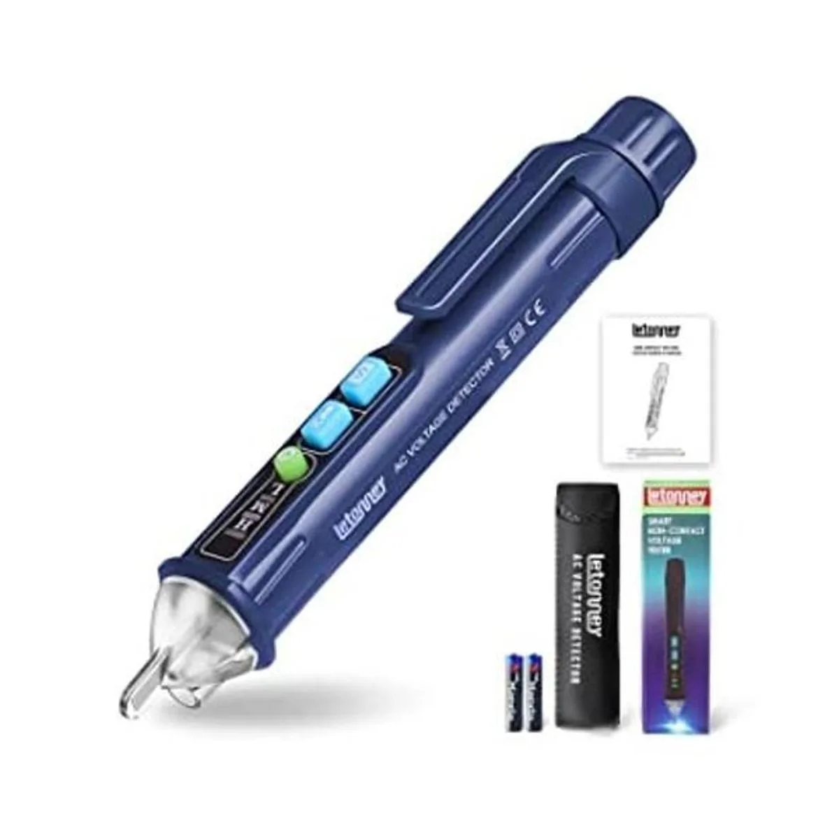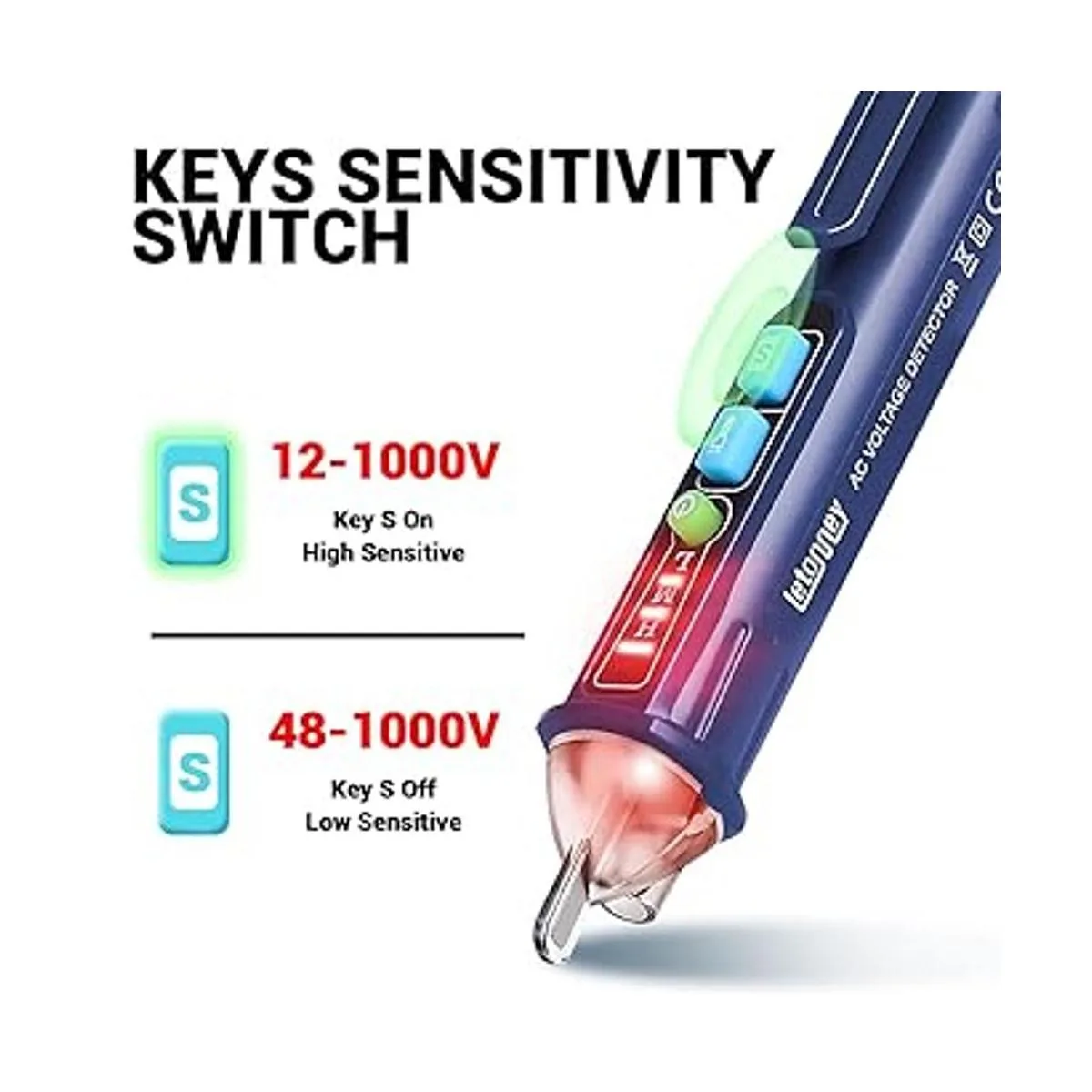 LETONNEY Comprobador de voltaje sin contacto, probador eléctrico de doble rango de CA de 12 V48 V1000 V, probador de cables, probador de enchufes con linterna LED, alarma de zumbador color azul