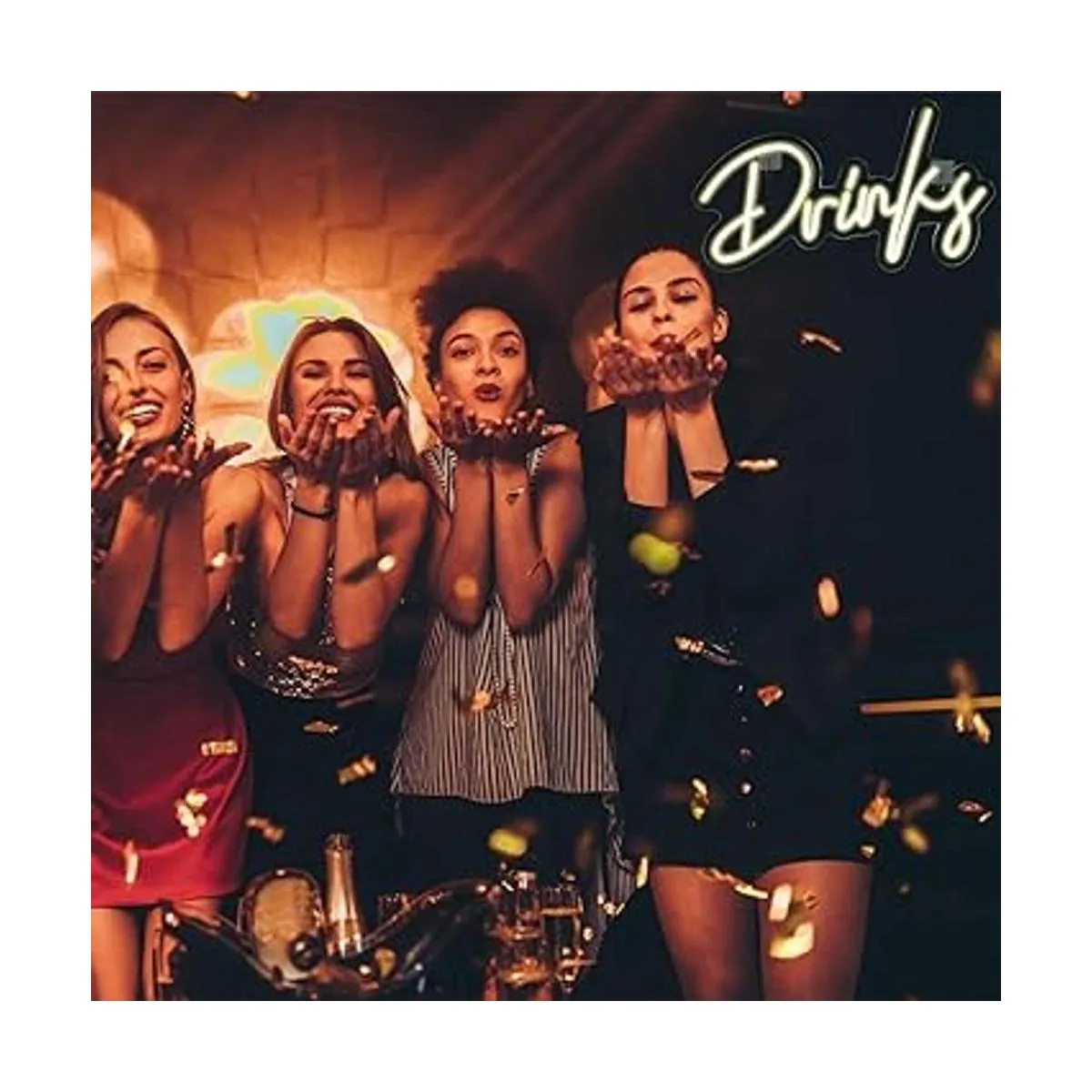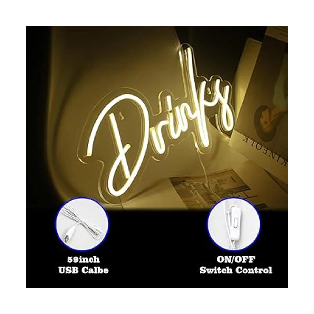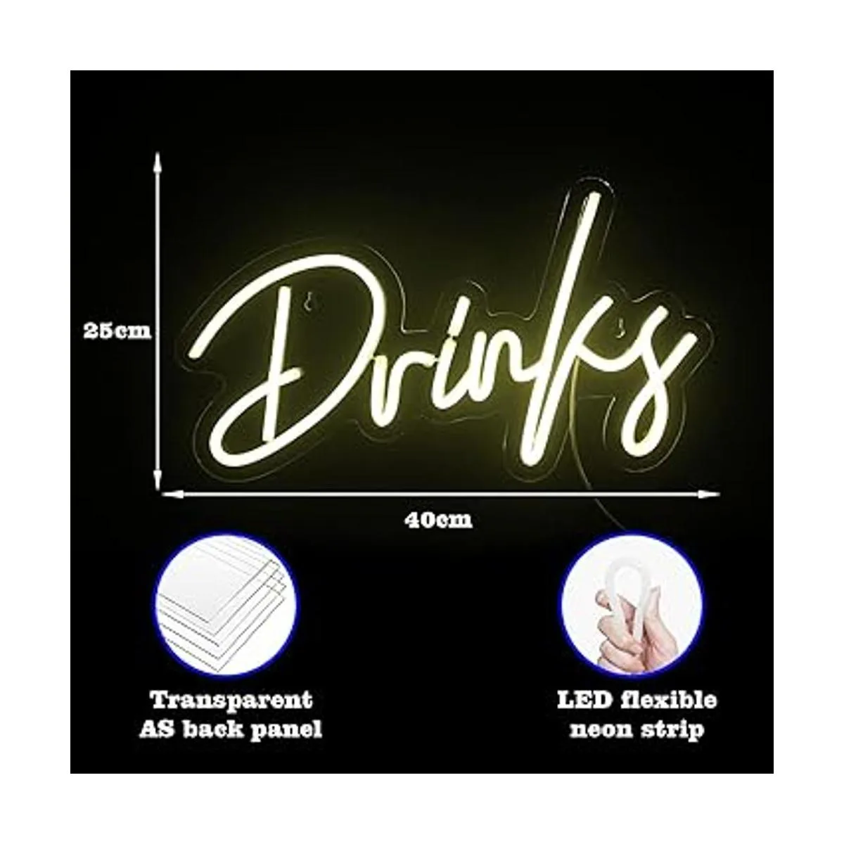 Letras de bebidas con luz de neón blanca cálida, letreros LED de neón alimentados por USB, decoración de pared para adolescentes y niños, habitación, restaurante, bar, hotel