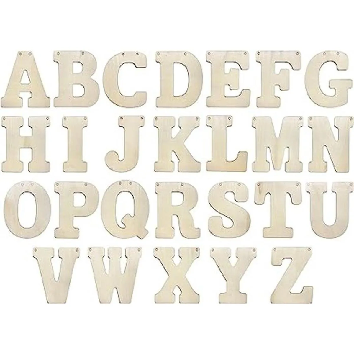 Letras de madera de 5 pulgadas, 66 piezas, letras del alfabeto de madera sin terminar para manualidades 2 juegos de AZ con vocales adicionales