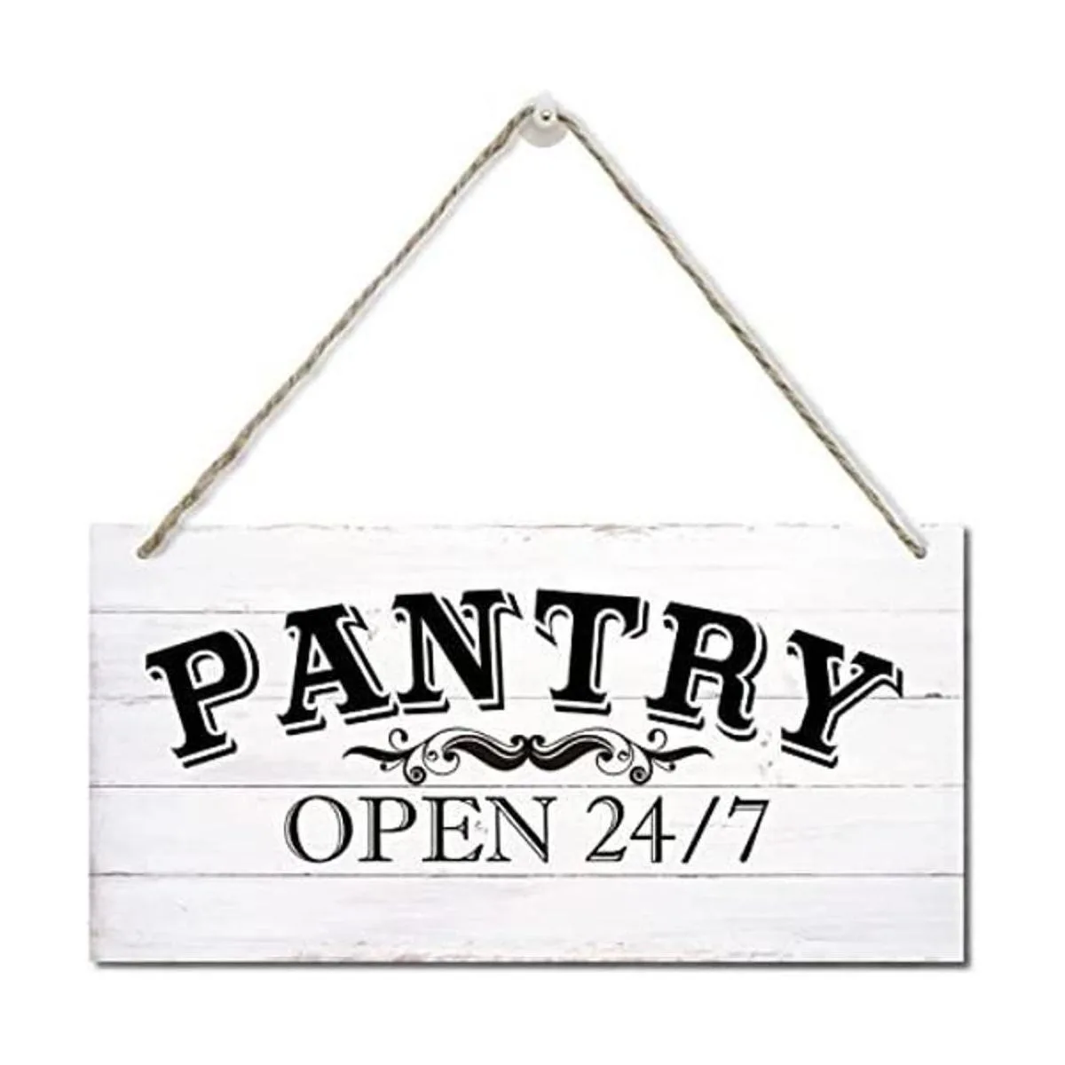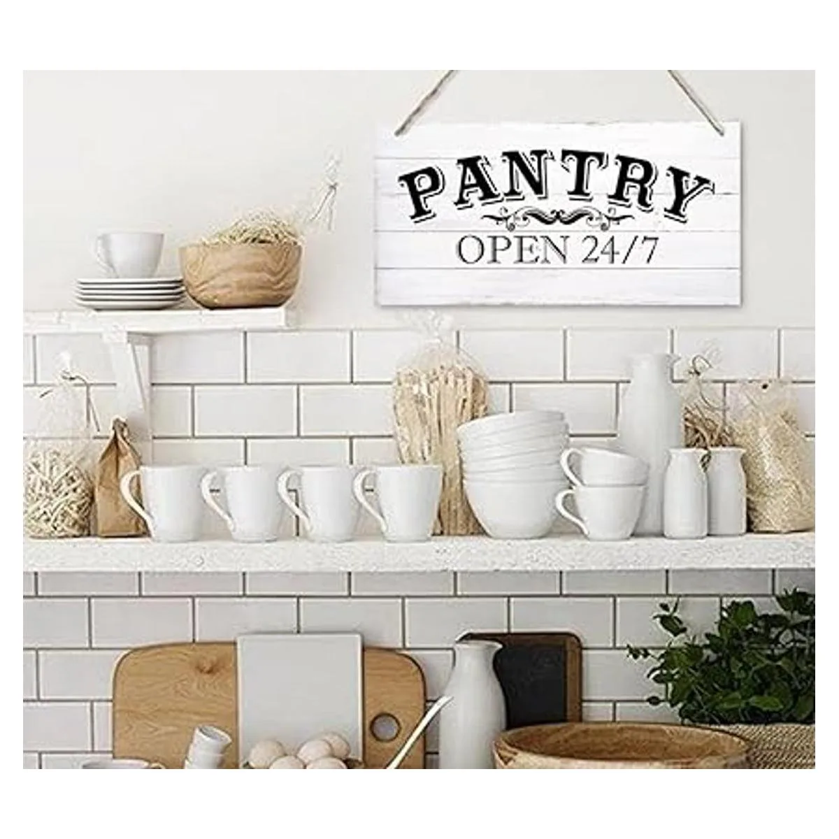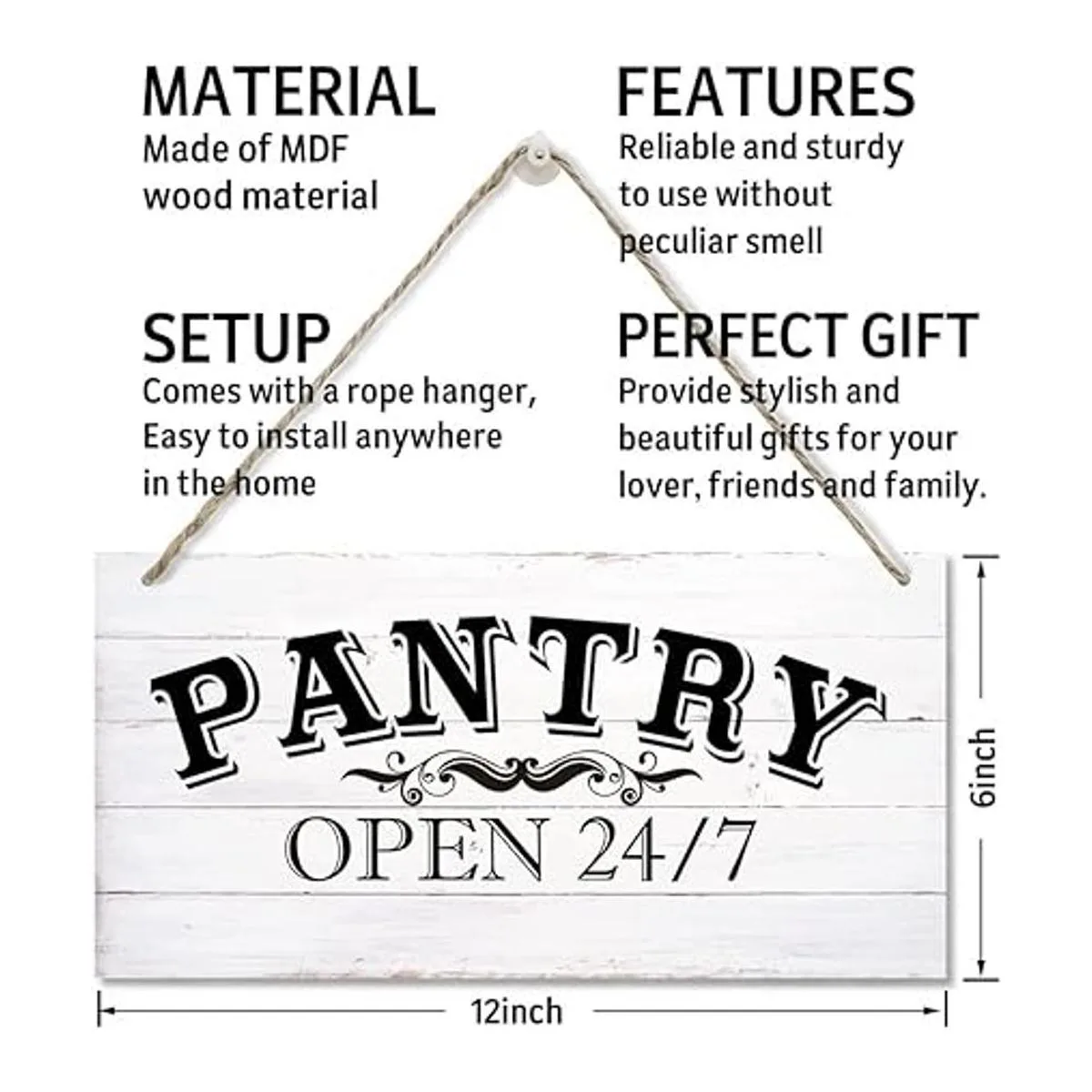 Letrero artístico para decoración de habitación de despensa, placa de madera impresa para colgar en la pared, letrero de madera con temática de granja, decoración vintage de despensa con citas abiertas de 247 pulgadas, tamaño 12 x 6 pulgadas