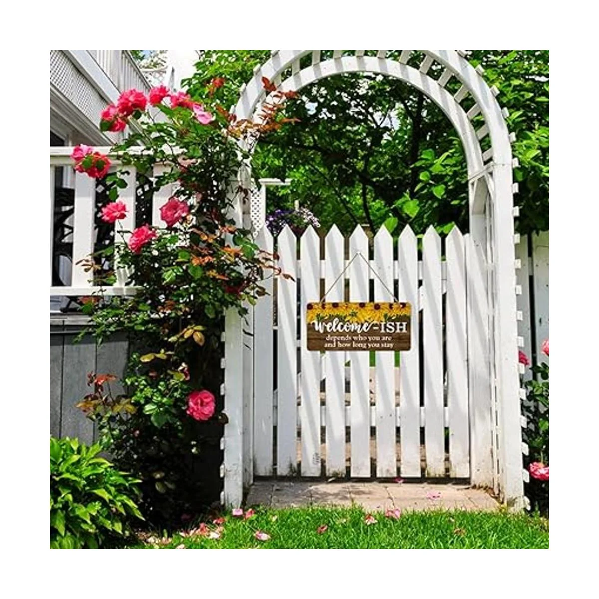 Fácil de instalar: dos agujeros preperforados y una cuerda de yute para colgar fácilmente tu señal de bienvenida en cualquier clavo o gancho.