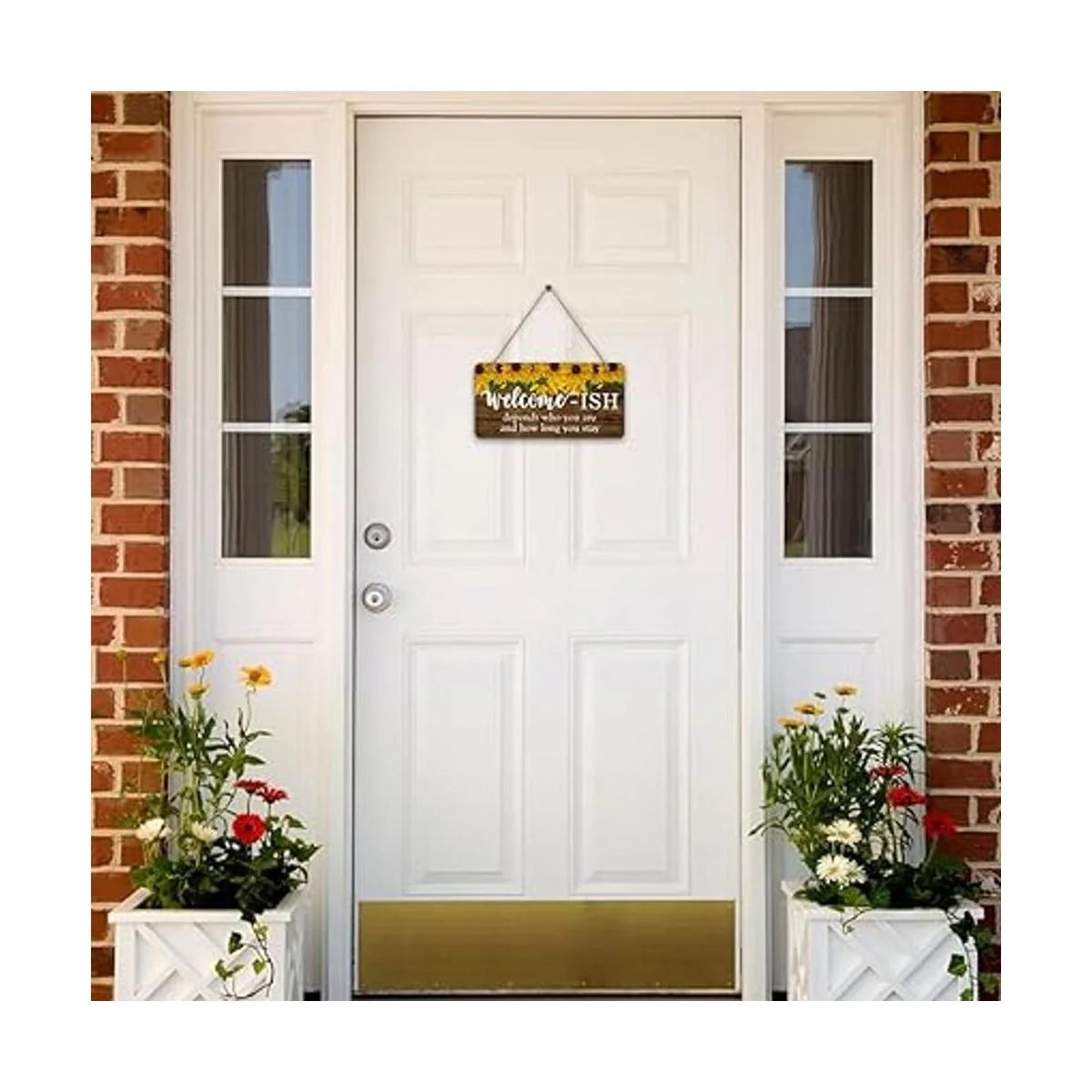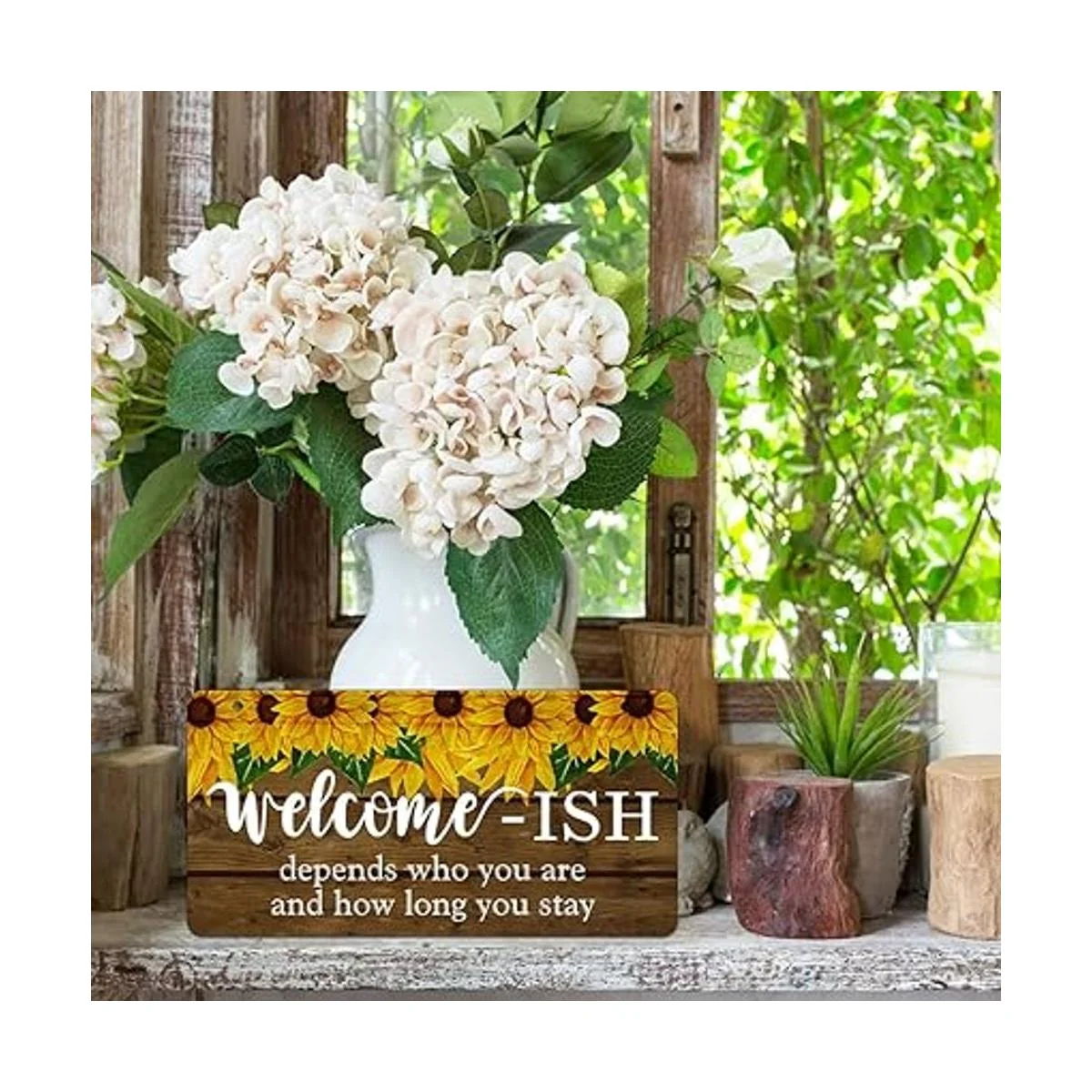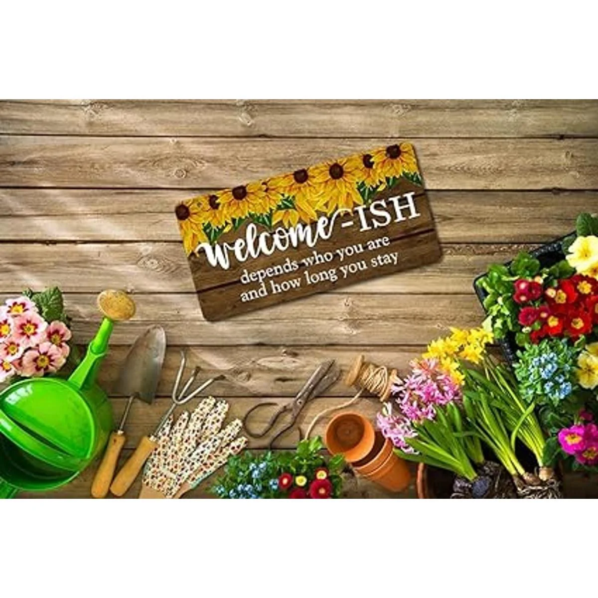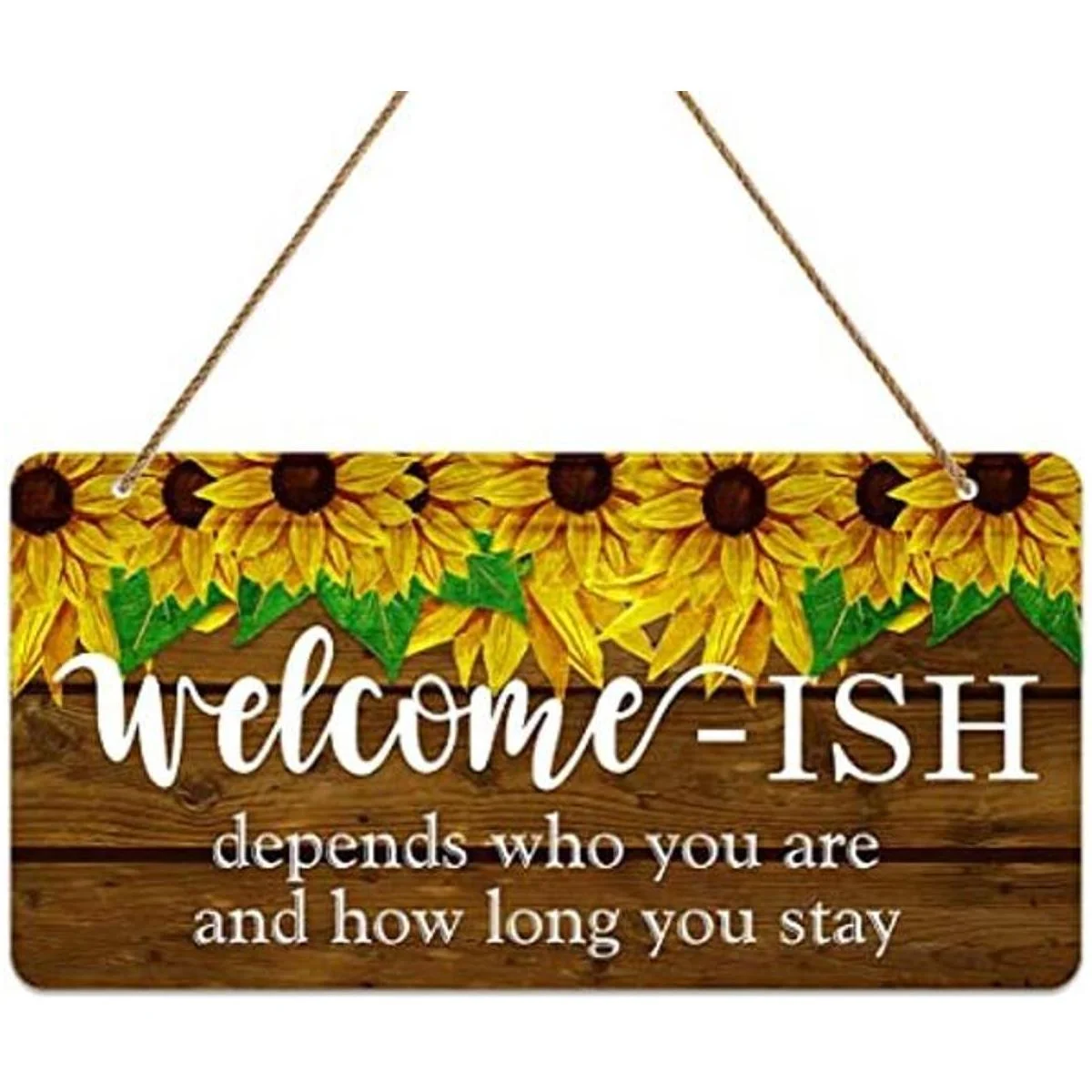 Letrero de bienvenida con diseño de girasol de PETCEE para puerta delantera, divertido Welcomeish colgante rústico decoración de 6 x 12 pulgadas casa de campo para decoración de porche entrada acento cocina