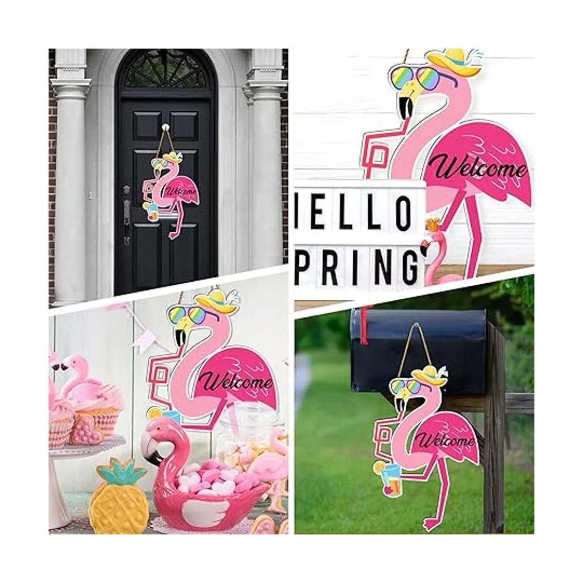 Amplias aplicaciones: el cartel de porche de flamenco se puede aplicar para decorar la puerta de tu hogar, baño, dormitorio, baño, hoteles, oficina, puerta delantera, fiestas temáticas de verano, fiestas Luau, fiestas hawaianas y mucho más