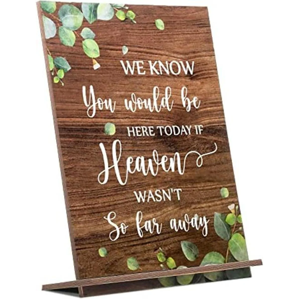 Letrero de boda rústico con memoria amorosa con texto en inglés We Know You Would Today If Heaven Wast So Far Away de madera, letrero conmemorativo de boda, boda, aniversario, reuniones estilo romano