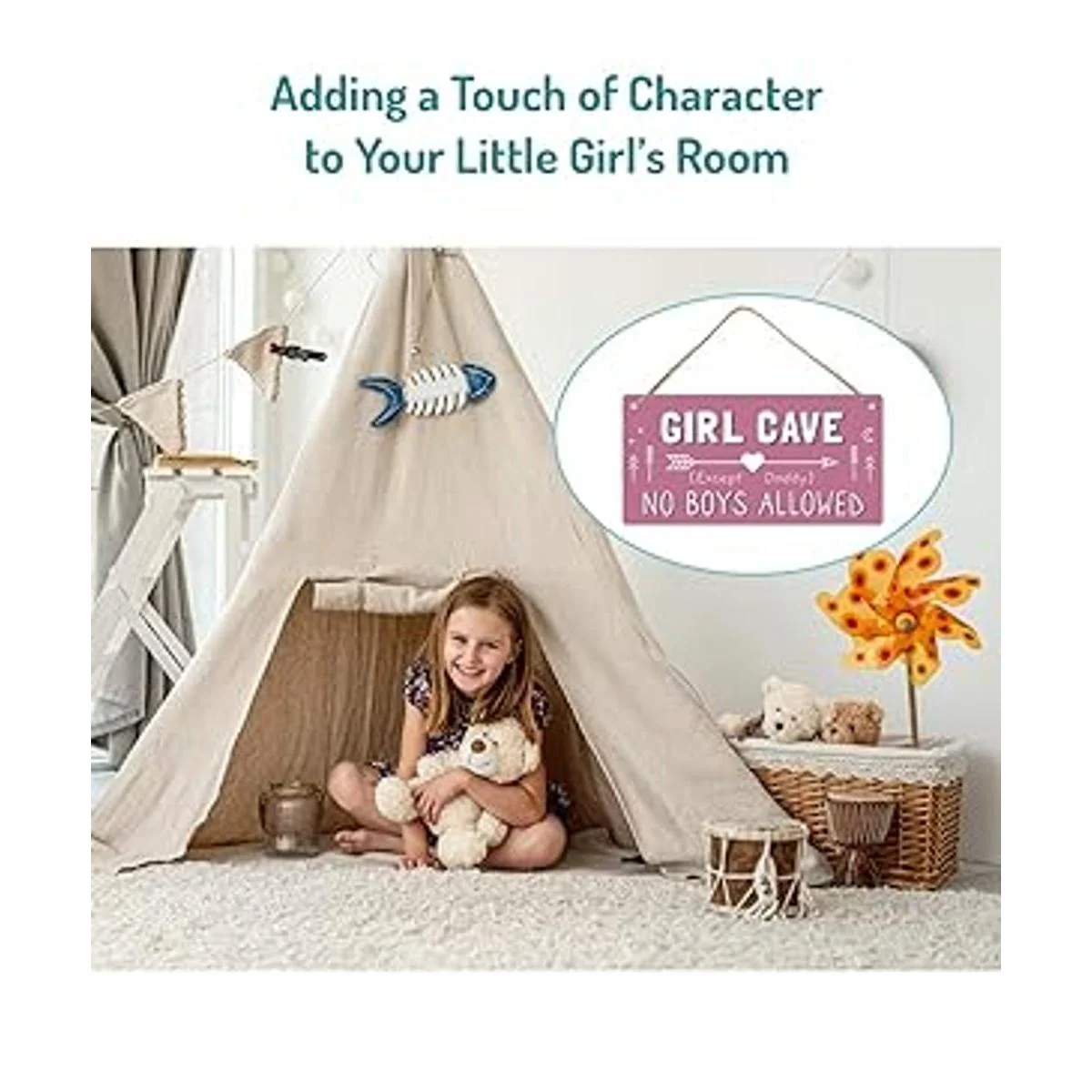 Letrero de cueva para niñas, decoración de habitación de niñas para dormitorio, 12 x 6 pulgadas, letrero colgante de plástico de PVC, impresión de alta precisión, a prueba de agua, letreros de habitación de los niños para puerta, no se admite niños, decoración de habitación