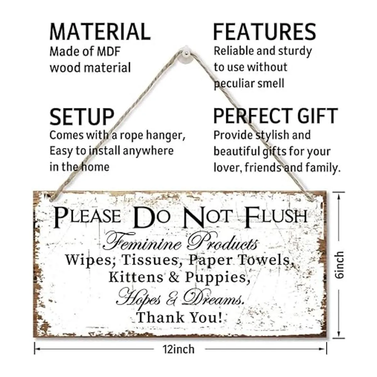 Letrero de decoración de pared, Hopes Dreams, Letrero de placa de madera impresa, letreros colgantes de baño, decoración divertida de pared para inodoro, decoración de baño de granja, letrero de arte de pared de 12 x 6 pulgadas