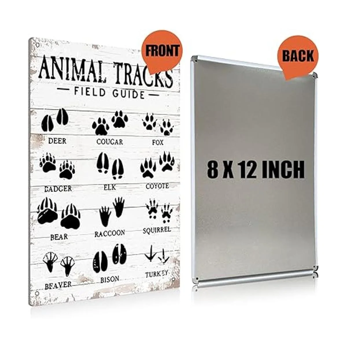 Letrero de guía de campo de Animal Tracks de metal para decoración de pared, decoración rústica para el hogar, regalo de 8 x 12 pulgadas