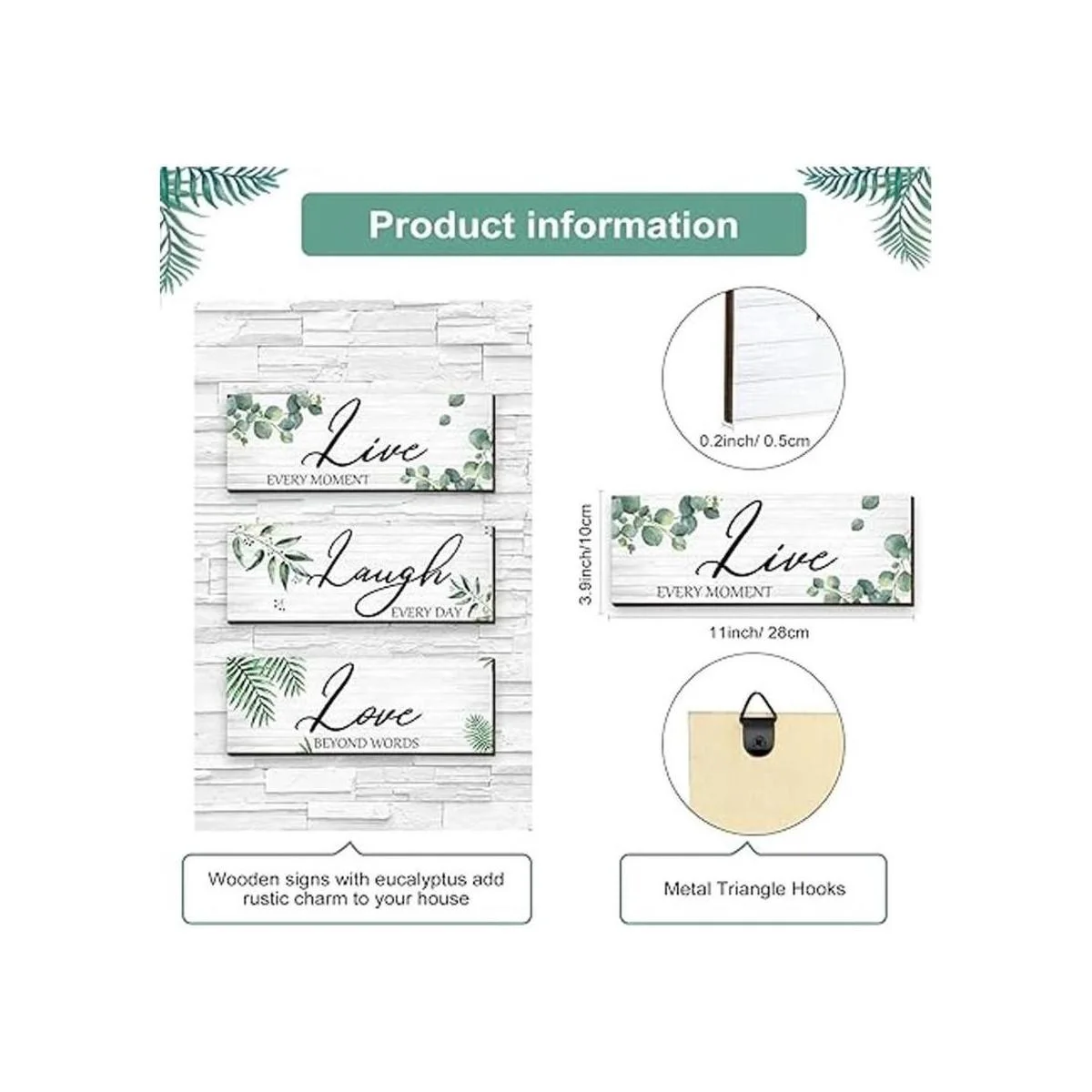 Haz que el hogar esté lleno de vitalidad: nuestros letreros de hojas botánicas de granja están adornados con hojas verdes sobre fondo de madera blanca, bien impresos con Live every moment, Laugh every day, Love beyond words en una fuente elegante, que resalta un sentido minimalista y una sensación moderna; colgar un cartel rústico en la sala de estar o comedor mejorará la relación entre ti, tus amigos y miembros de la familia