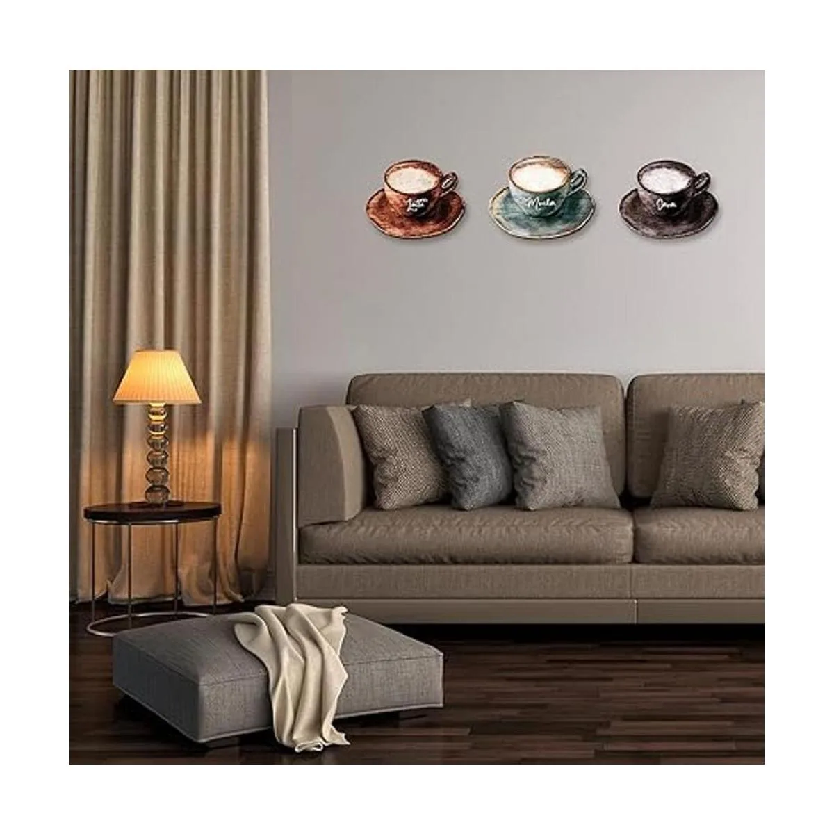 Lo que puedes obtener: el paquete incluye 3 letreros de madera con forma de taza de café con leche, en 3 colores diferentes, cantidad suficiente y varios estilos para satisfacer tus necesidades de decoración en casa o cafetería