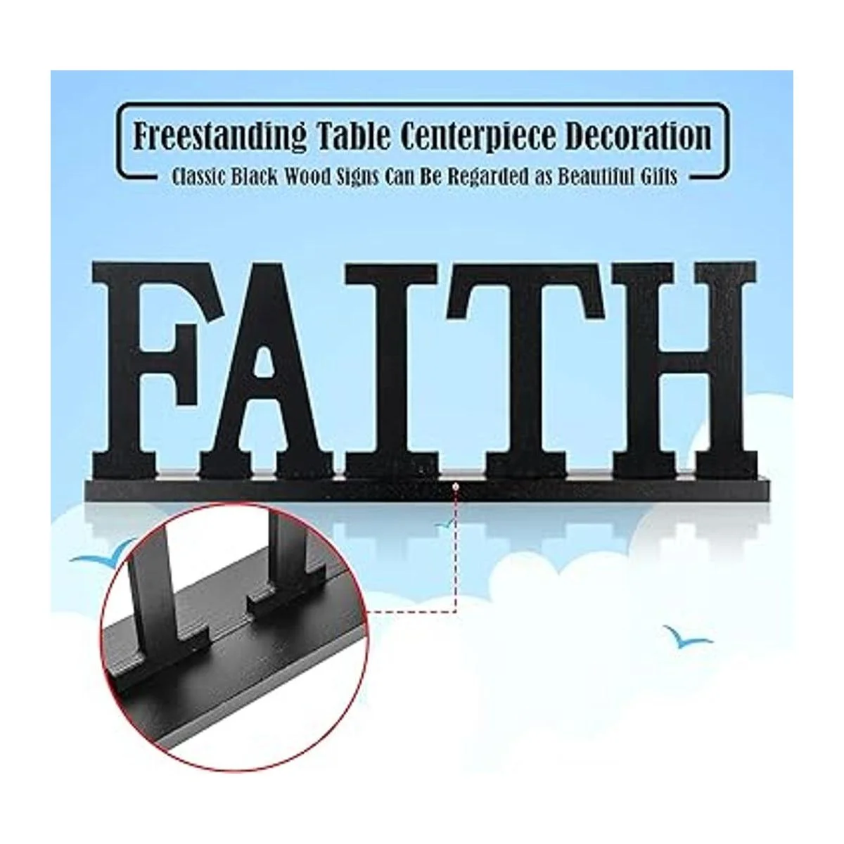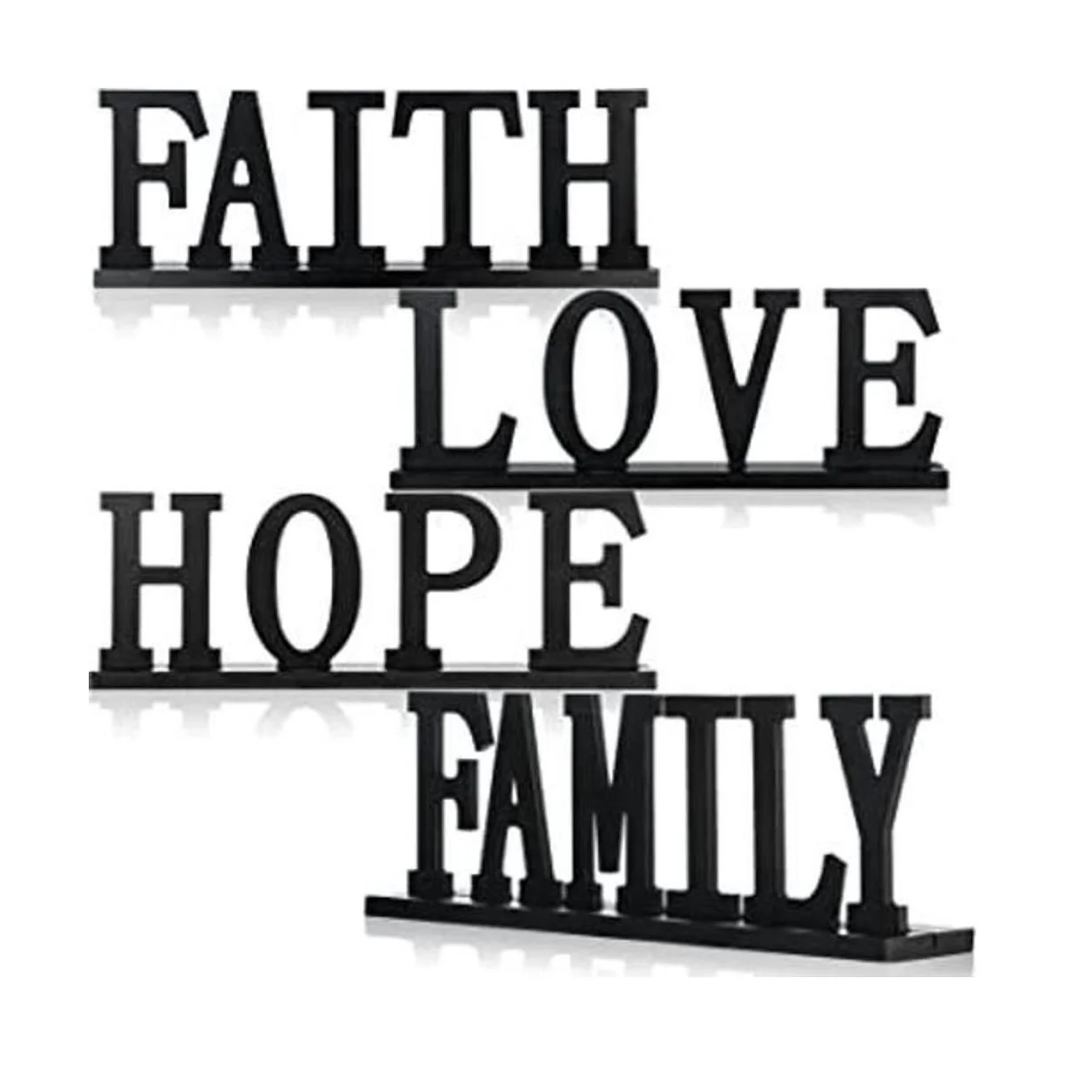 Juego de letreros de madera: el paquete incluye 4 piezas de madera negra con letras recortadas para mesa, Love, Faith, Hope, Family, amplia cantidad y combinación delicada que te proporciona una amplia opción para la decoración de la vida diaria