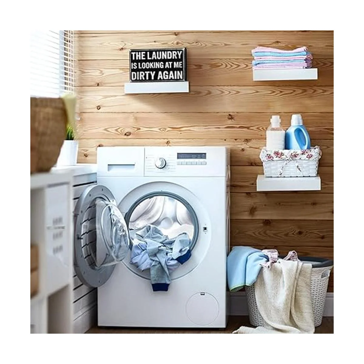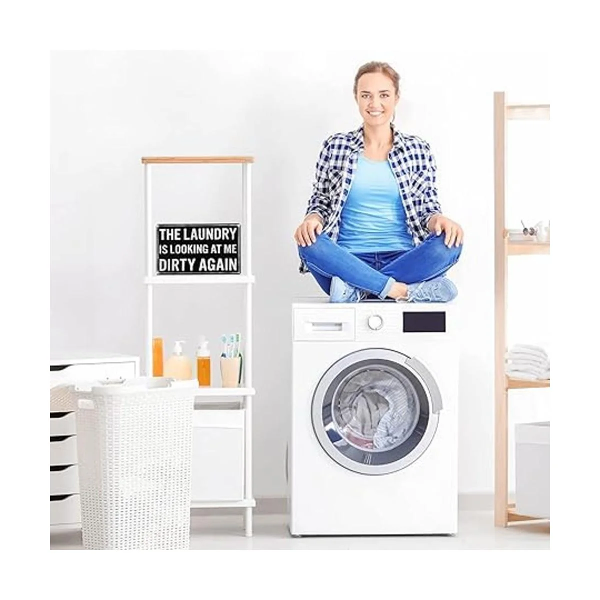 Llama la atención fácilmente: la decoración de pared de lavandería mide aproximadamente 5.5 x 6 x 1.77 pulgadas, pequeño en tamaño y adecuado para ser colocado en la mesa o colgar en la pared clavos no incluidos, atrae la atención de tus invitados u otros fácilmente a primera vista