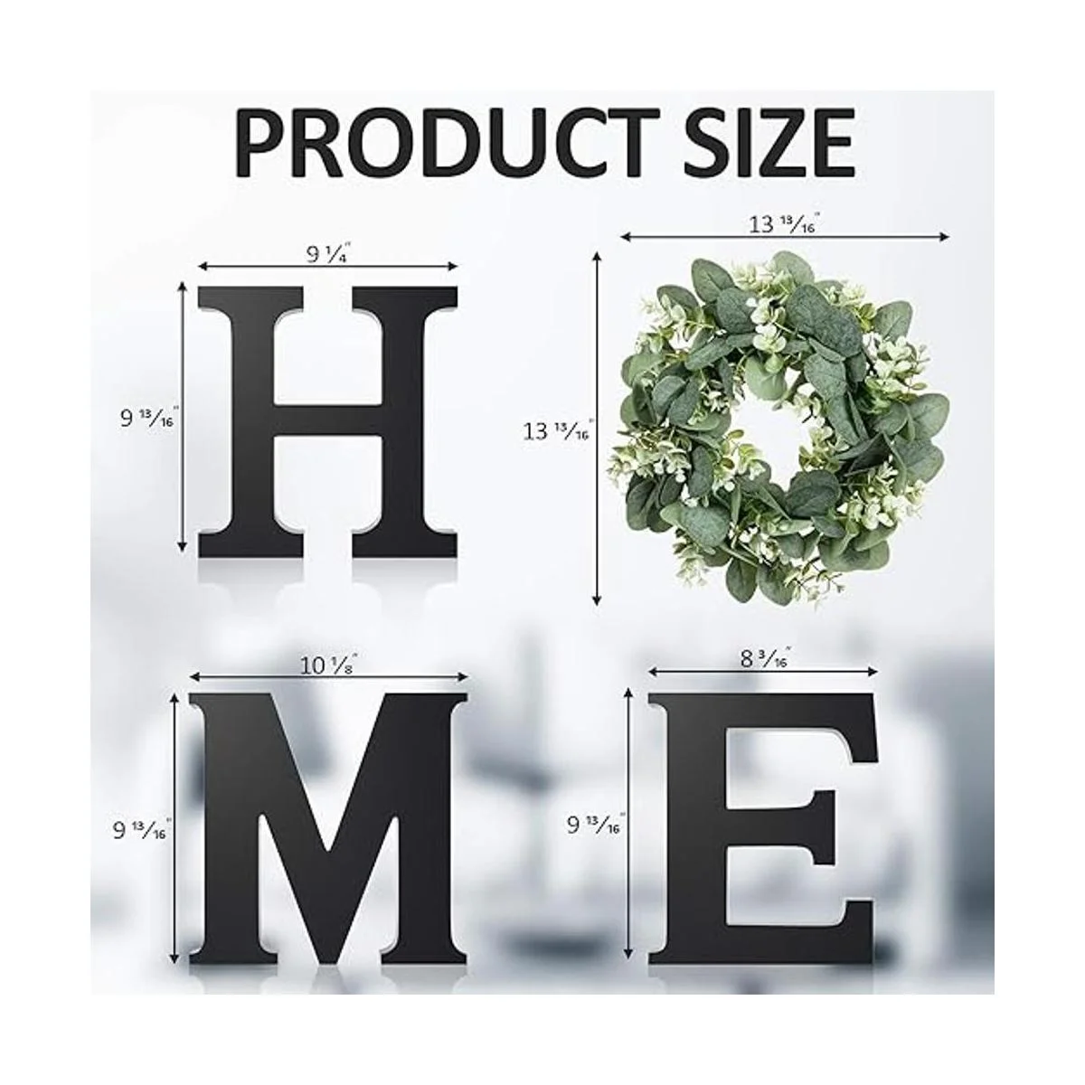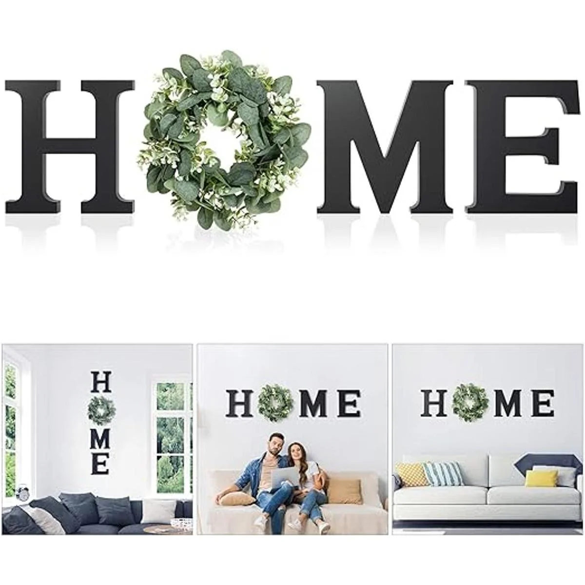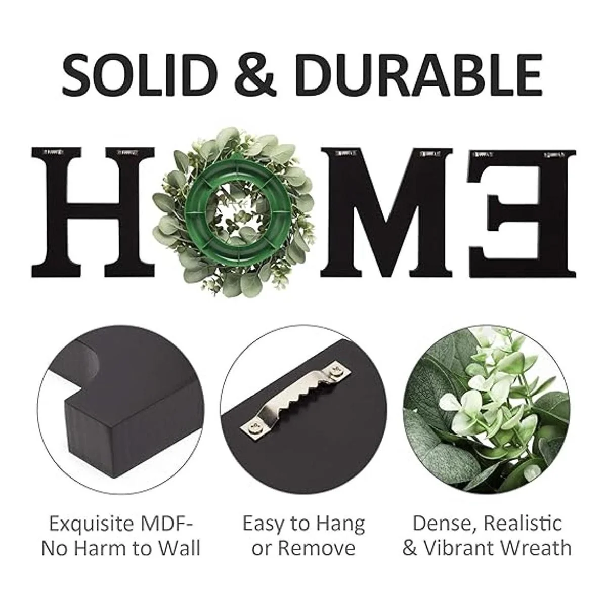 Letrero de madera para decoración de pared, letras de madera para el hogar con corona, eucalipto artificial, moderno, decorativo, decoración para el hogar, casa de campo, para sala de estar, cocina, Navidad, regalo de inauguración de la casa