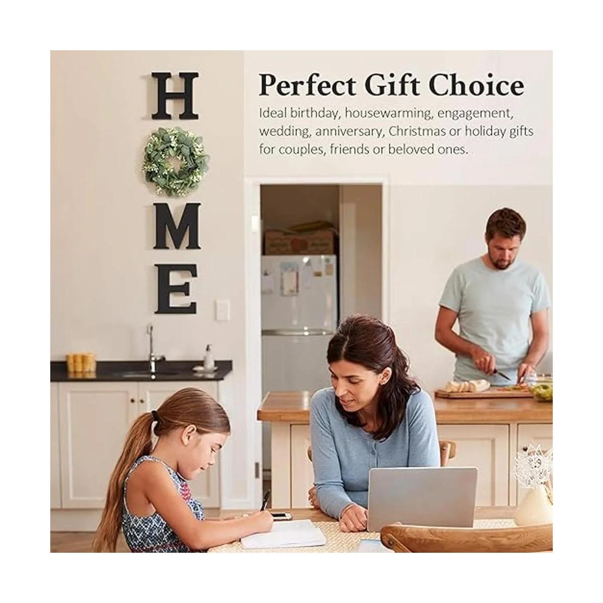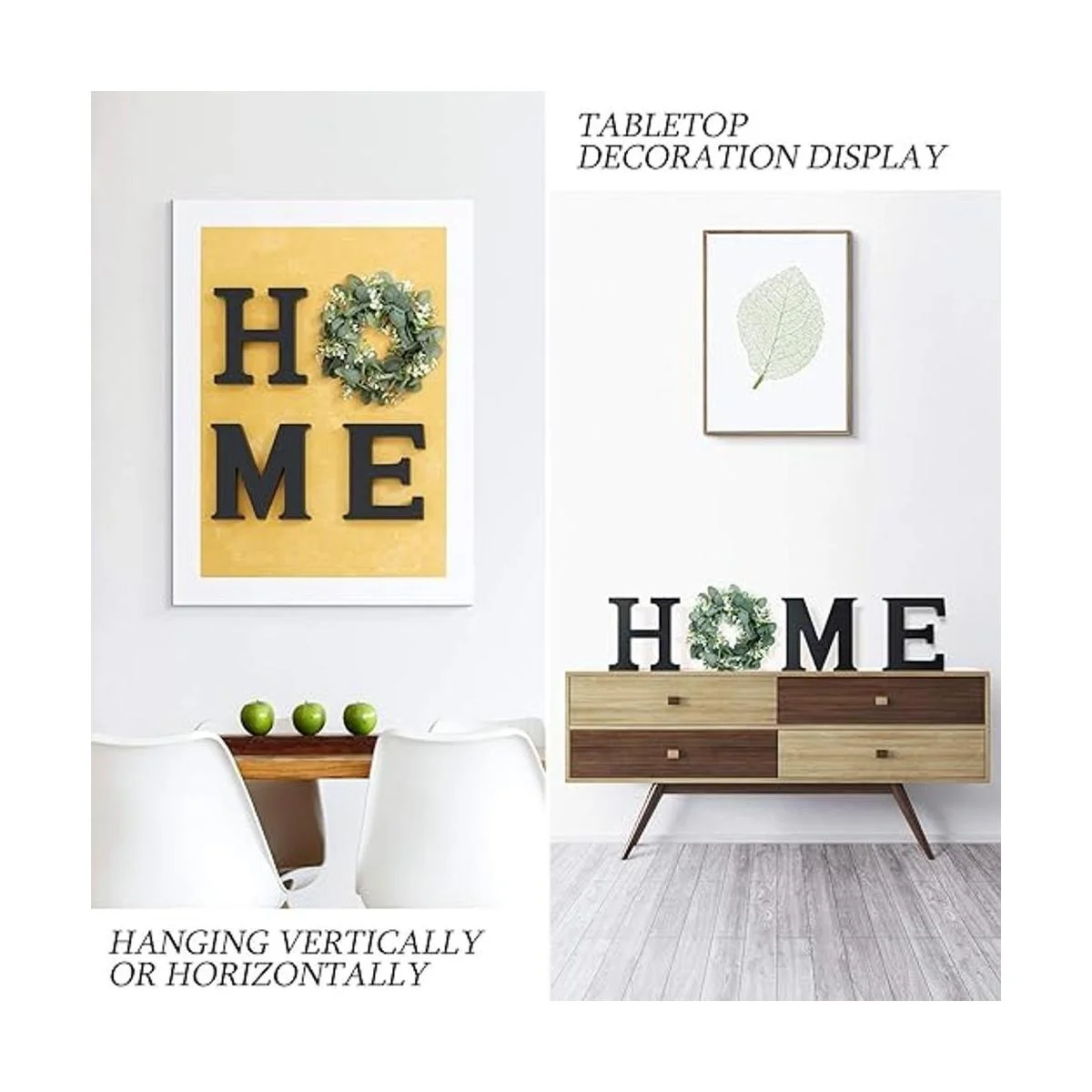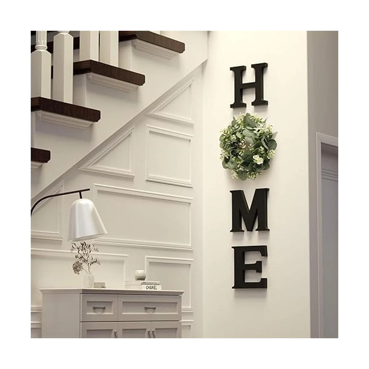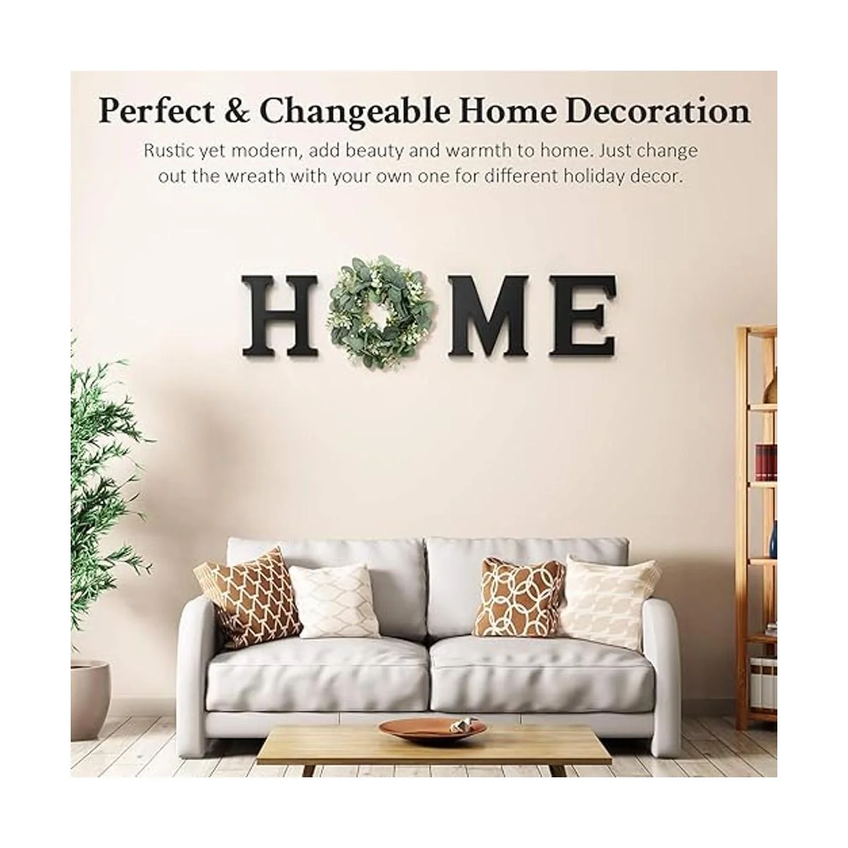 Letrero de madera para decoración de pared, letras de madera para el hogar con corona, eucalipto artificial, moderno, decorativo, decoración para el hogar, casa de campo, para sala de estar, cocina, Navidad, regalo de inauguración de la casa