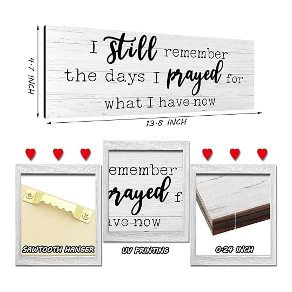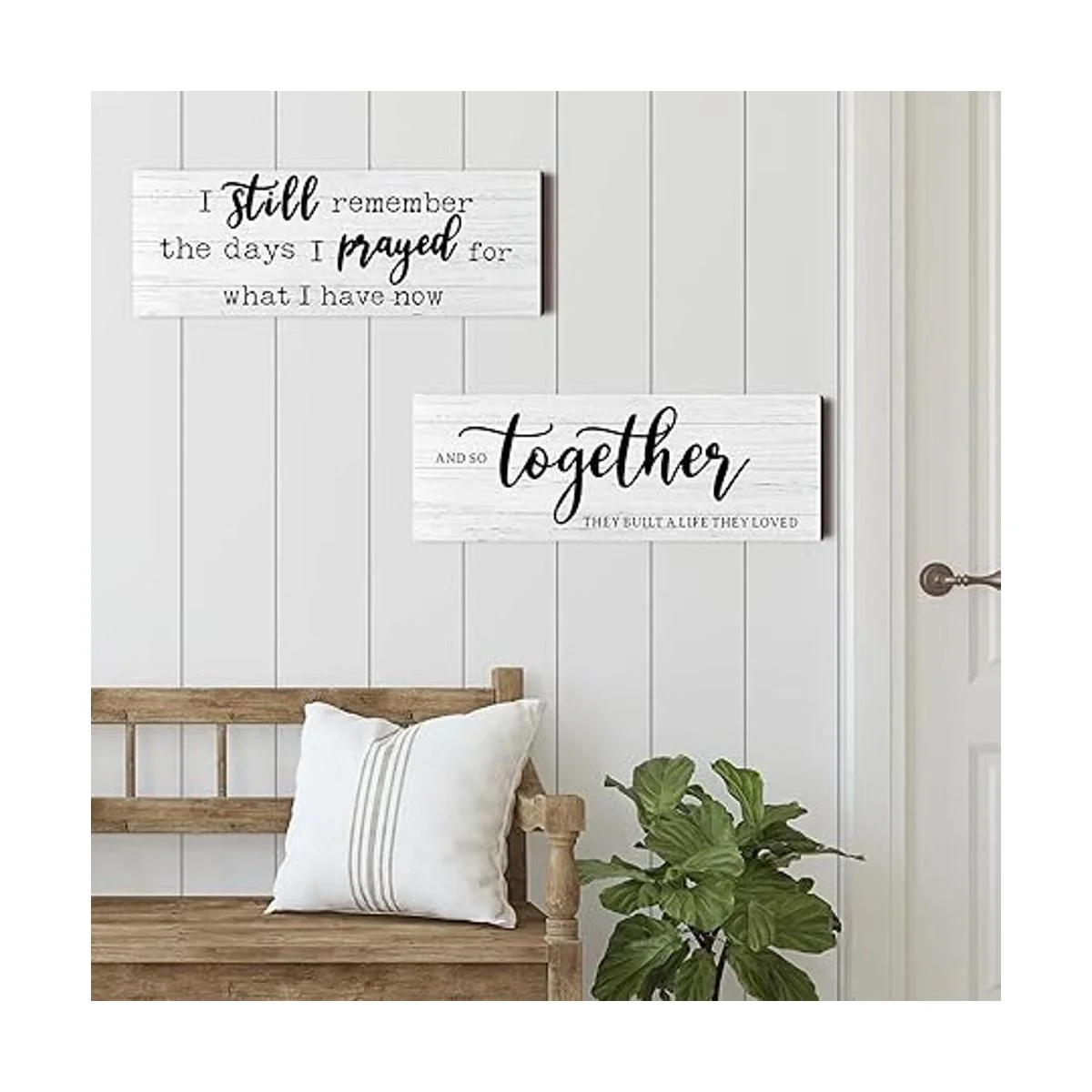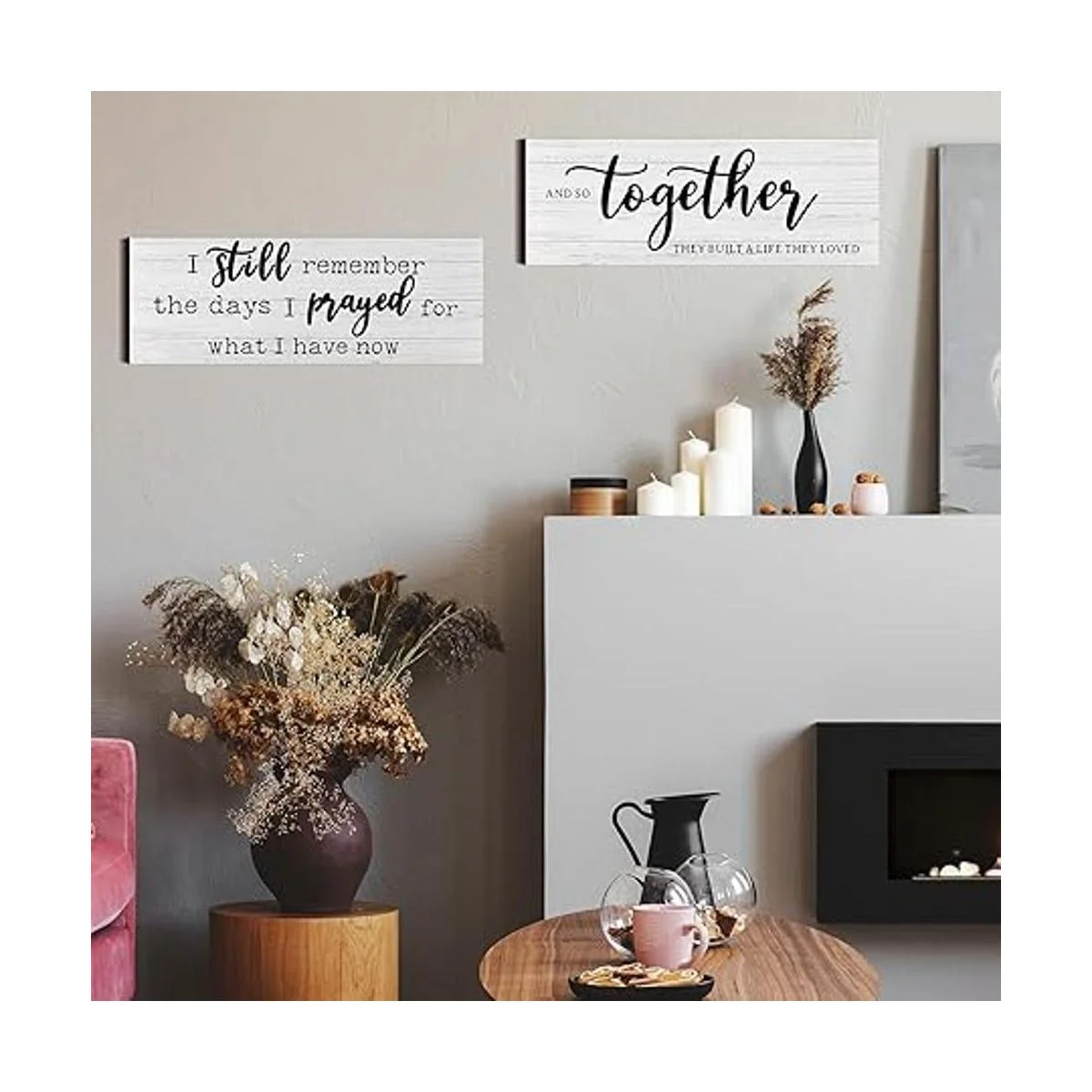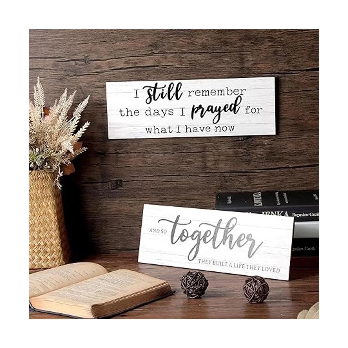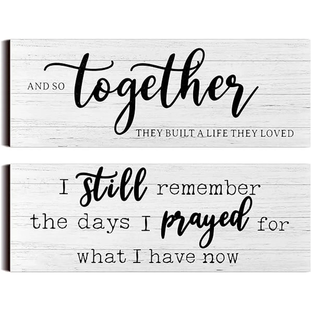 Dichos inspiradores: estos carteles de madera rústica están impresos con letras cálidas, incluyendo I still remember the days I prayed for what I have now, y And so together they built a life they loved, que añadirá serenidad a la habitación e inspirará a mantenerte agradecido por tus bendiciones