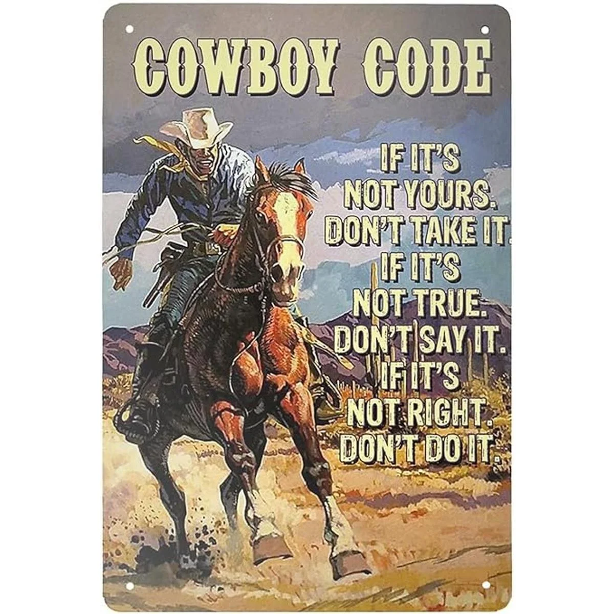 Letrero de metal de vaquero, código de vaquero, letrero de estaño retro para granja, aldea, hogar, hotel, bar, cafetería, decoración de pared al aire libre, 8 x 12 pulgadas