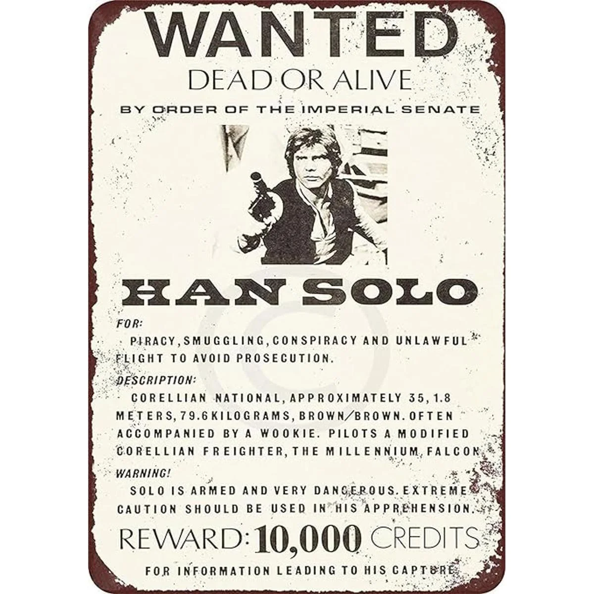Letrero de metal de Wisesign para decoración de pared, diseño de Kraze Han Solo Wanted Poster Vintage Reproducción 8 x 12 personalizado