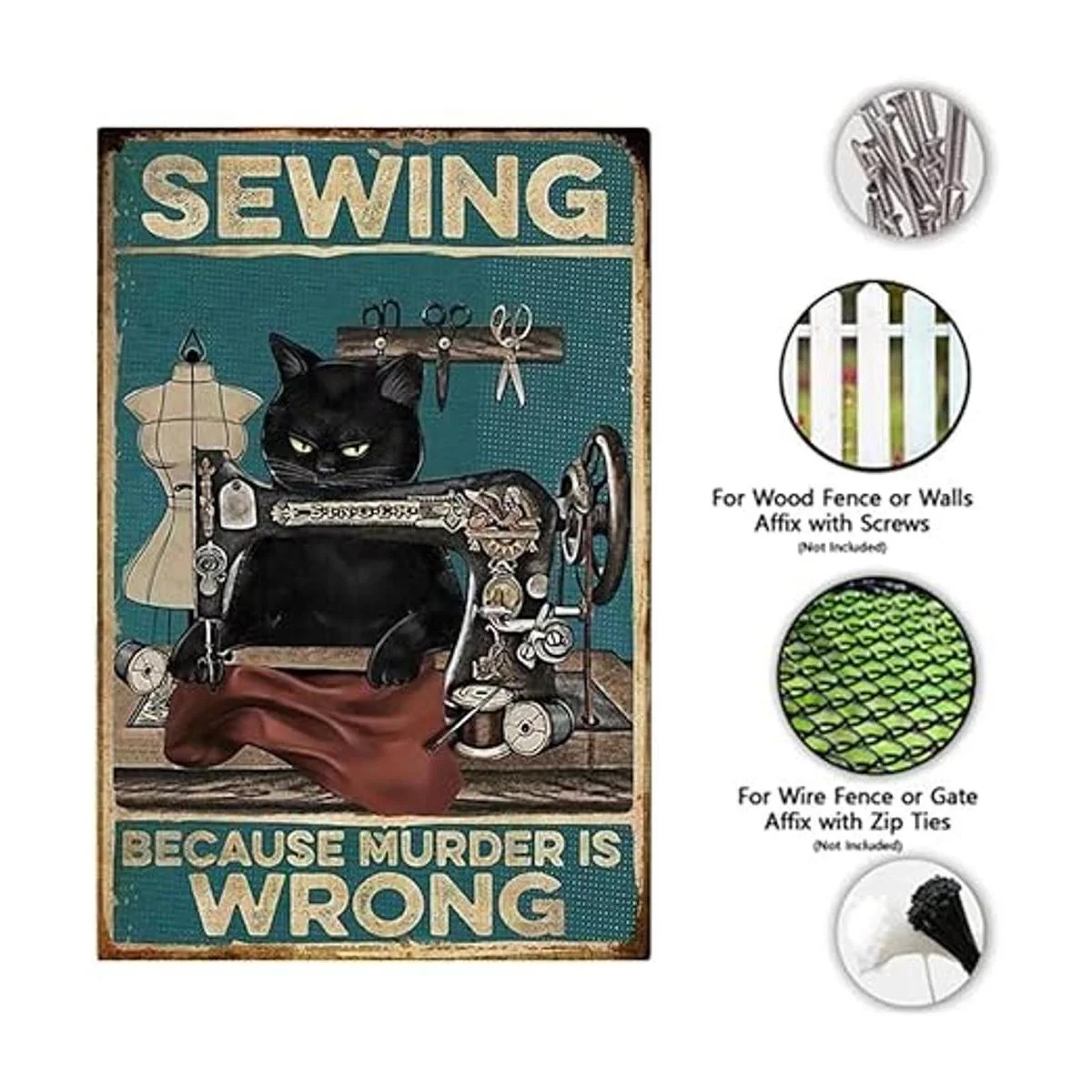Material: la imagen está impresa con costura porque asesinato es erróneo de letrero retro de lata de gato, hecho de hierro de estaño/metal, respetuoso con el medio ambiente y reciclable.