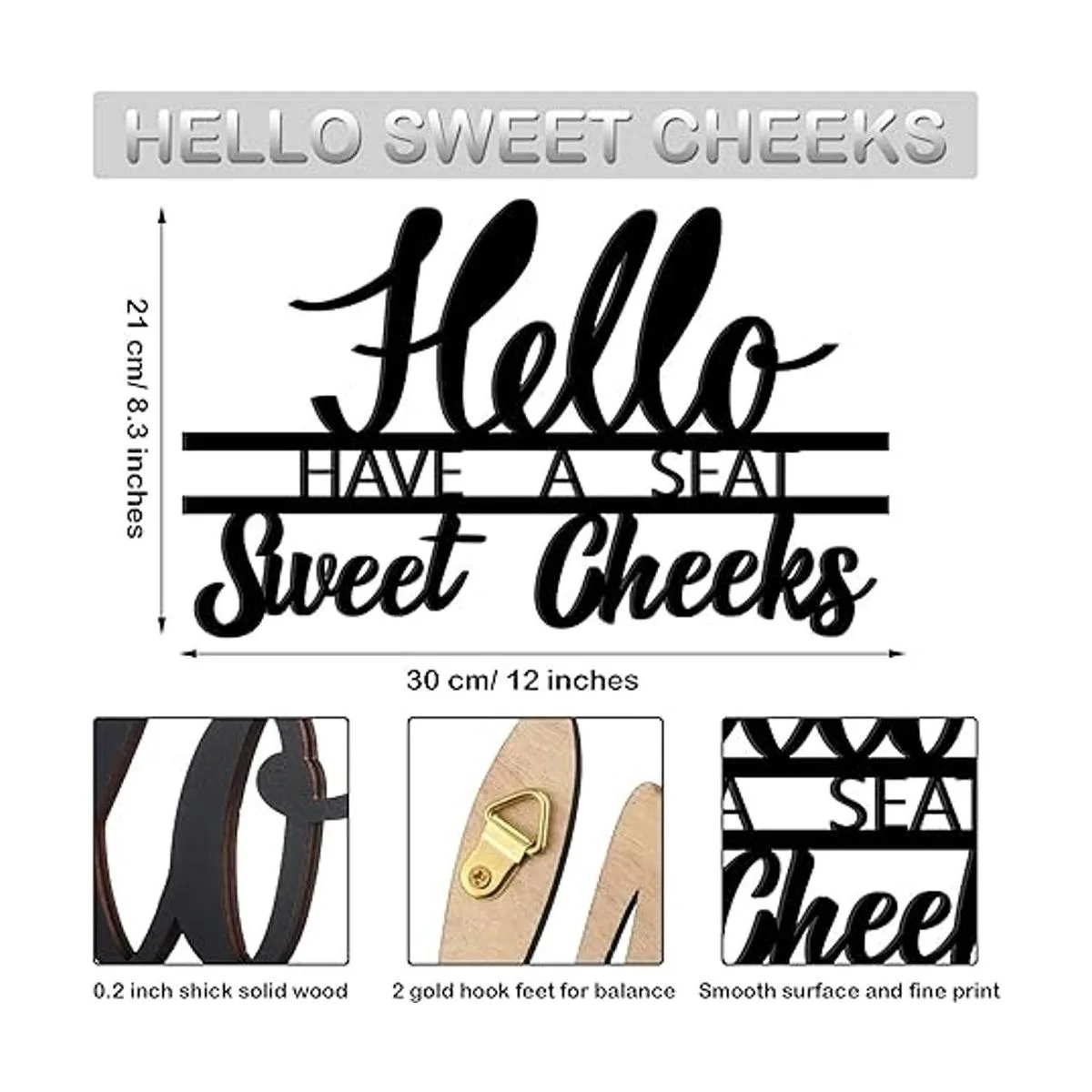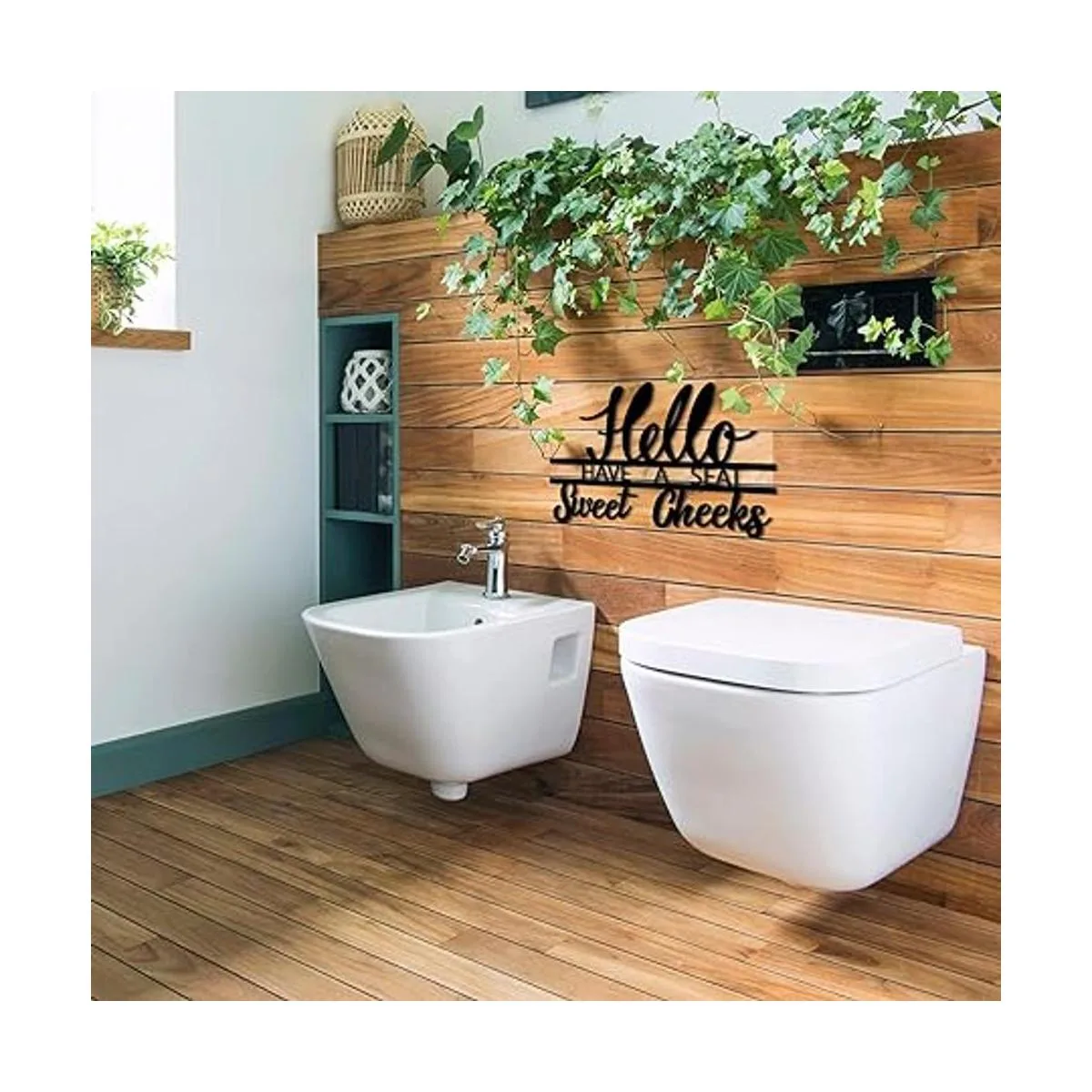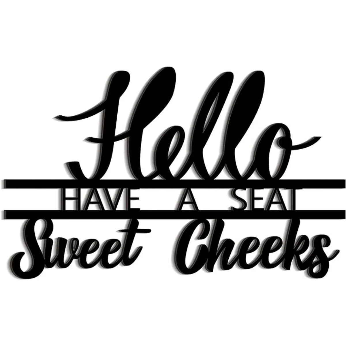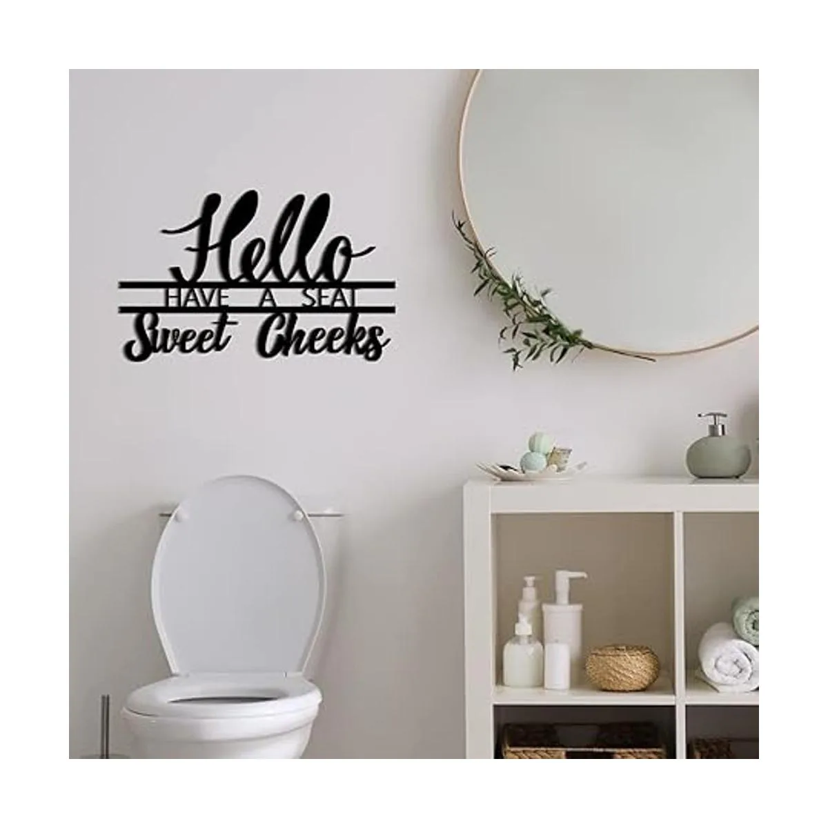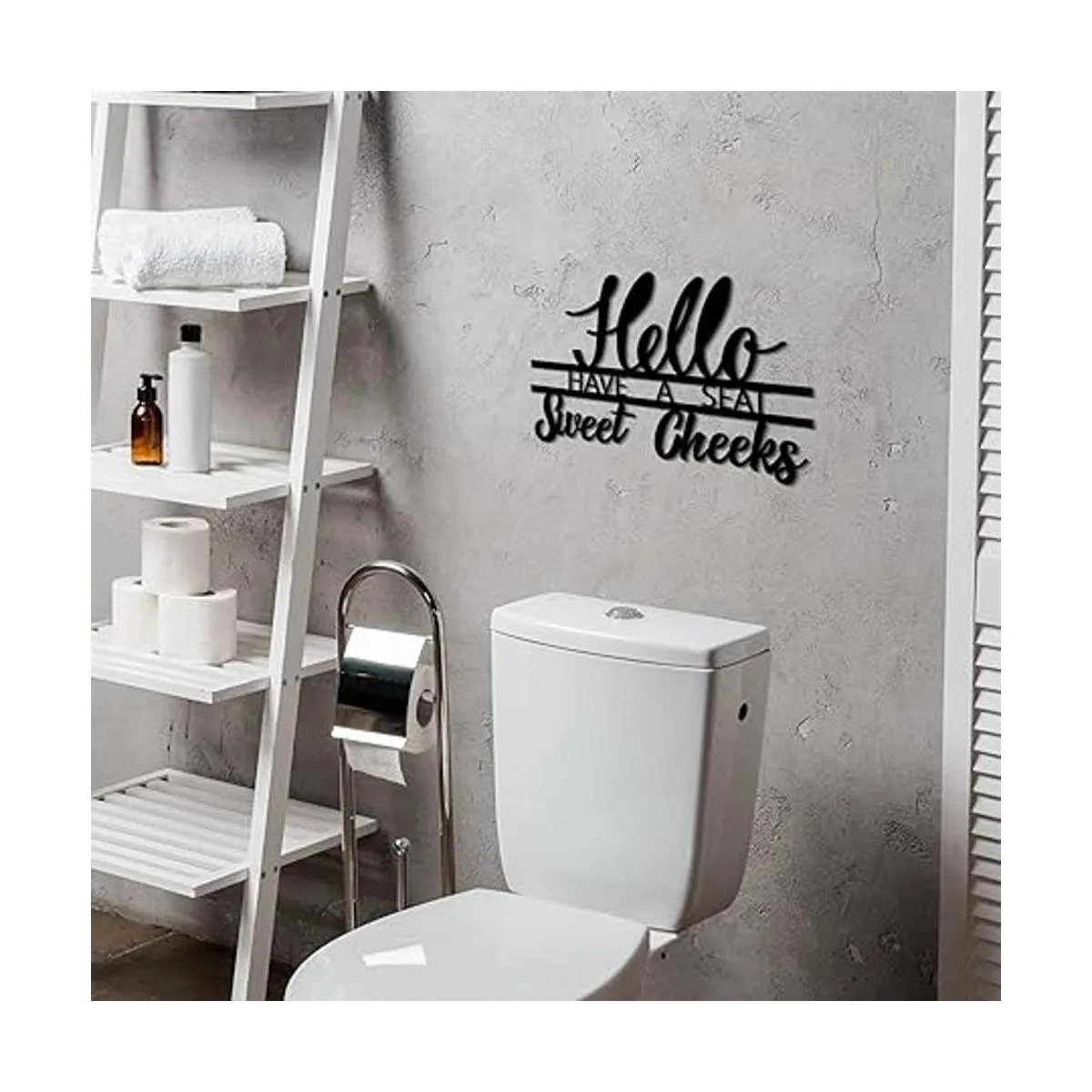 Letrero de pared con texto en inglés Hello Sign Have a Seat de madera para baño, divertido letrero rústico para baño, arte de pared de baño, letras de madera para casa de campo, decoración de baño, 12 x 8.3 pulgadas negro