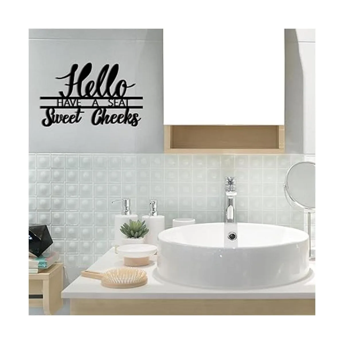 Decoración de pared de Hello Wall: el letrero de pared de baño está impreso con refranes, lo que siempre te recuerda mantener un estado de ánimo alegre. Y está impreso con la letra tener un asiento, que complementará otras decoraciones de arte de baño, impresionando a tus invitados, amigos y familiares