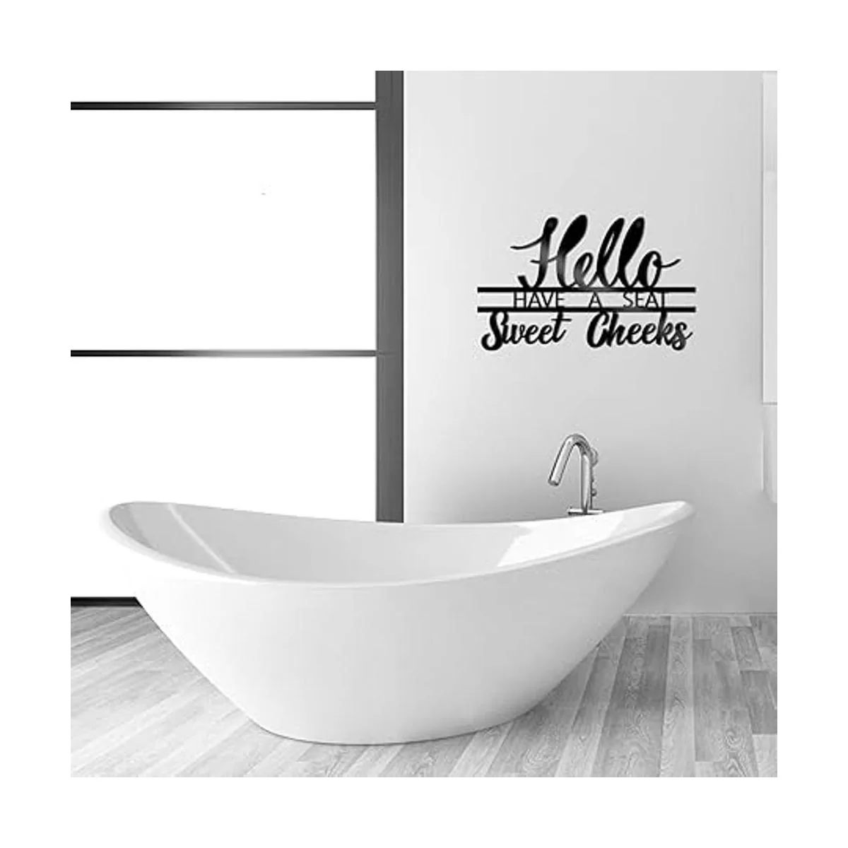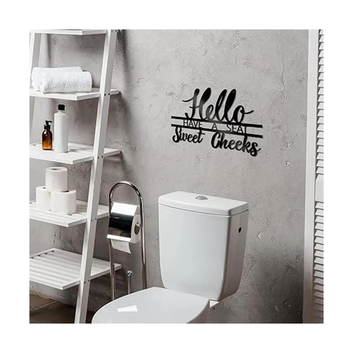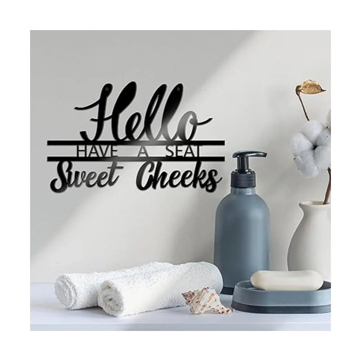 Letrero de pared de metal con texto en inglés Hello Sweet Cheeks para decoración de baño, diseño de casa de campo, texto de metal negro para decoración del hogar, cocina, inodoro