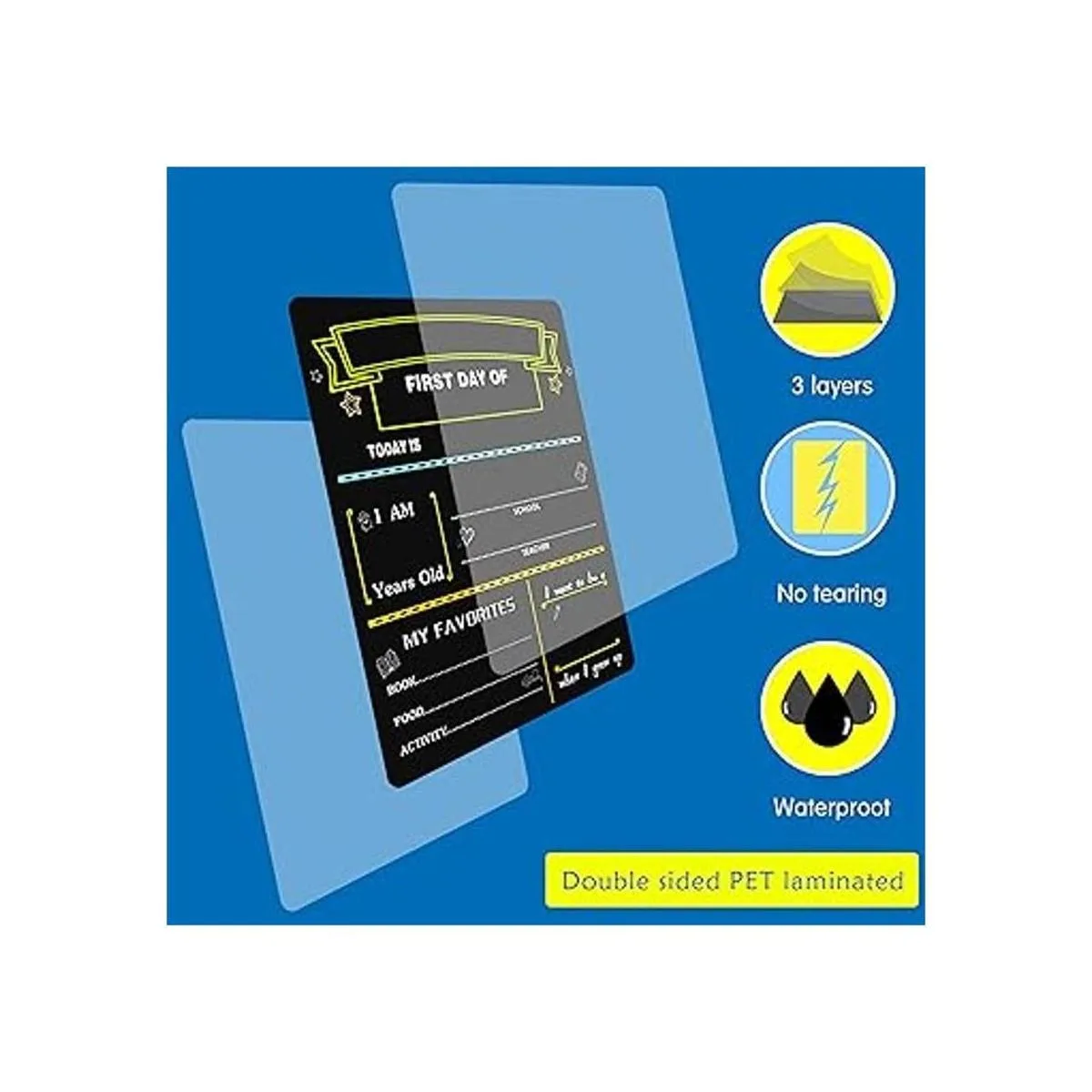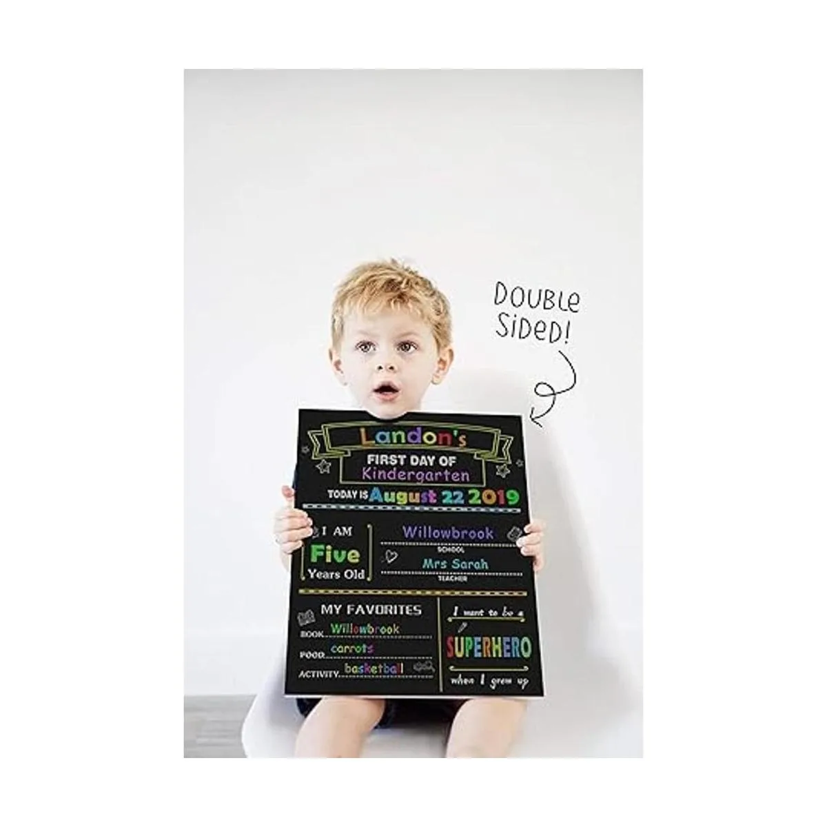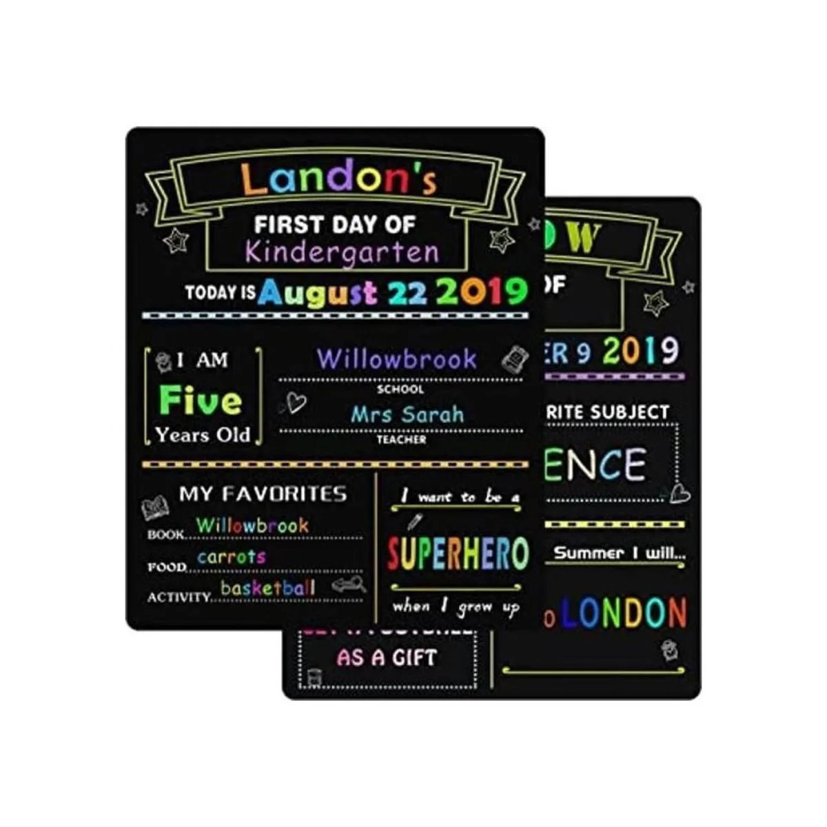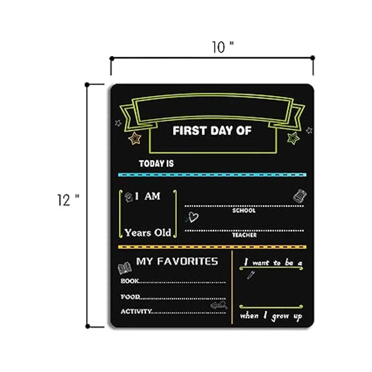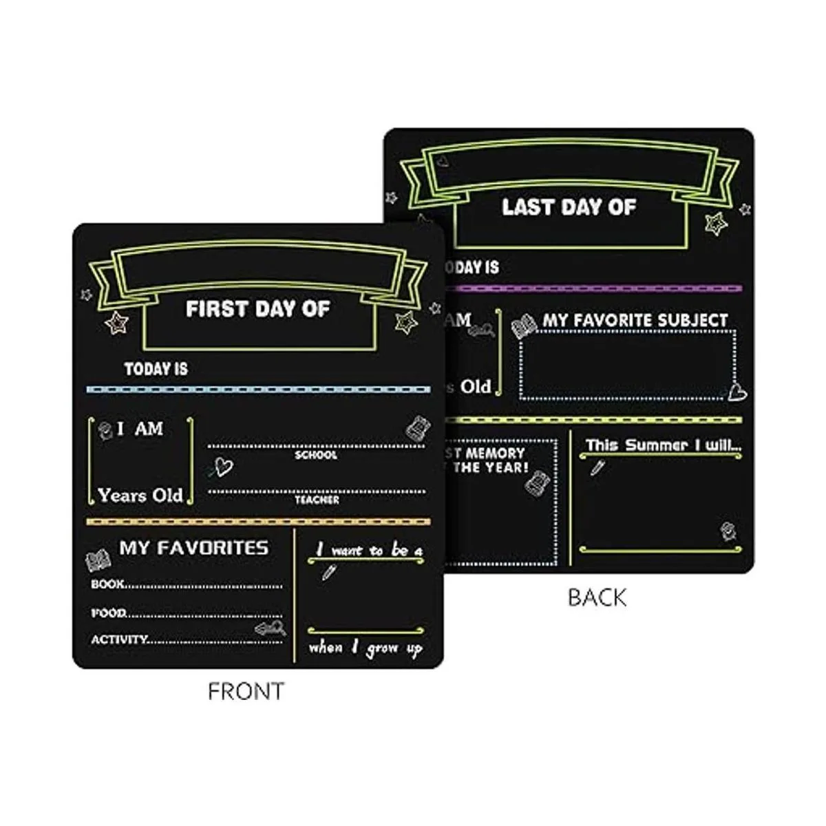 Diseño de dos caras. Conjunto de letreros de pizarra para el primer día y el último día de escuela. Fabricado con materiales de alta calidad.