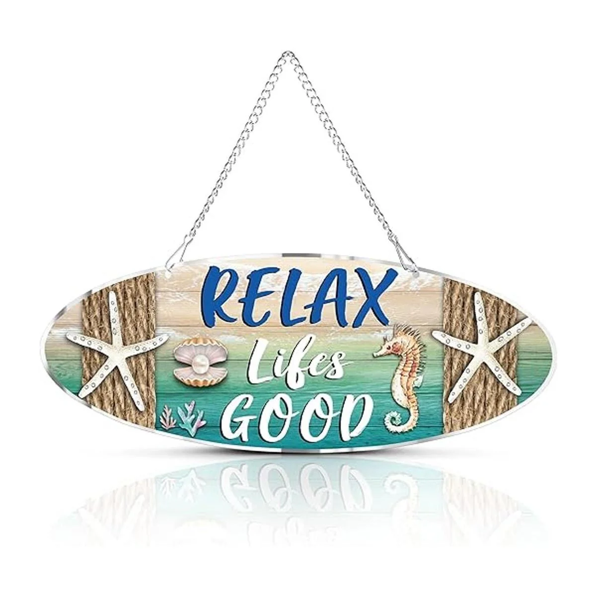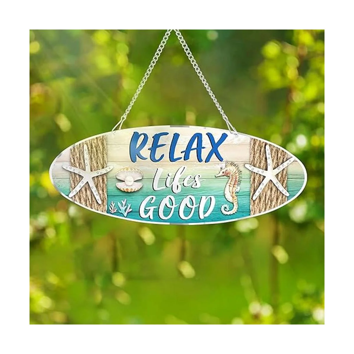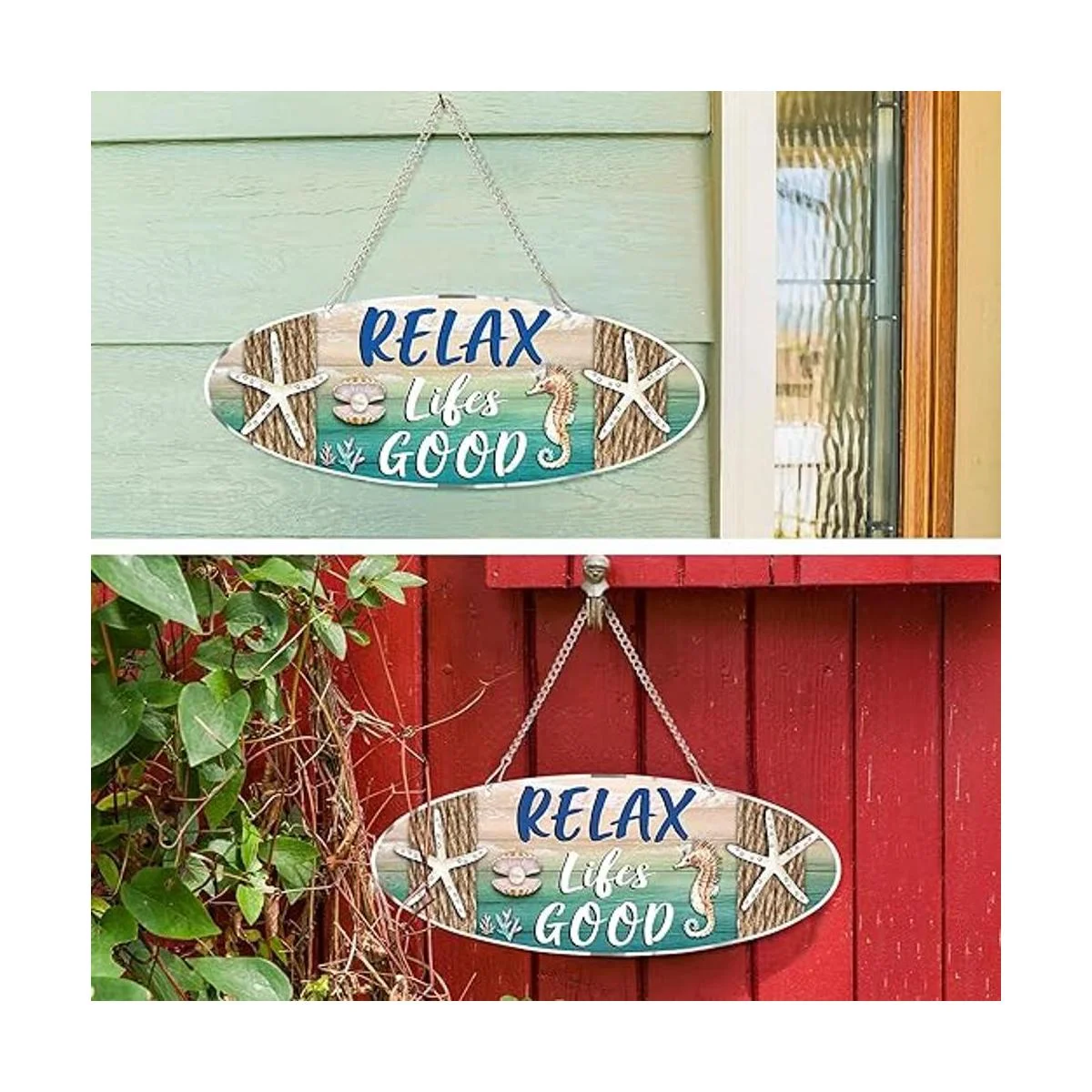 Lo que obtendrás: recibirás 1 placa de playa de metal, impresa con palabras de Relax Lifes Good y diseñada con concha, elementos de playa de estrella de mar, muy adecuada para la decoración del hogar