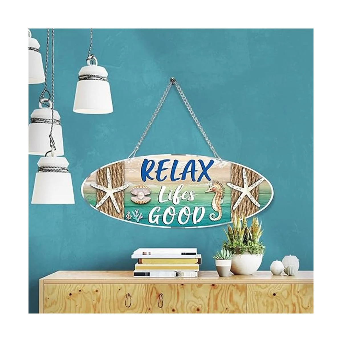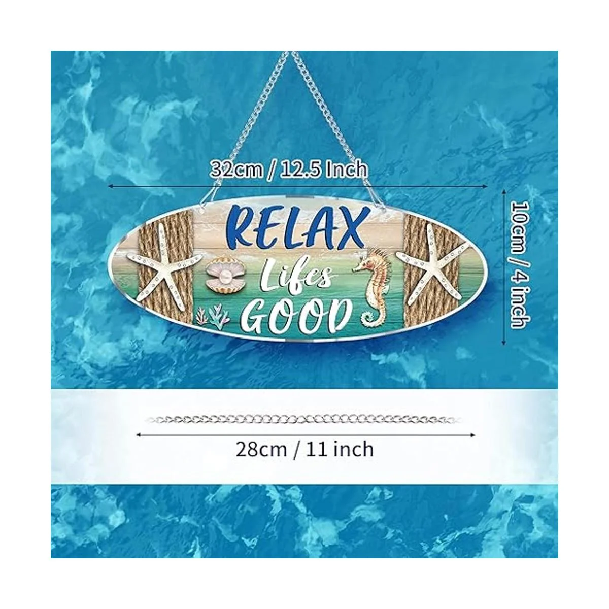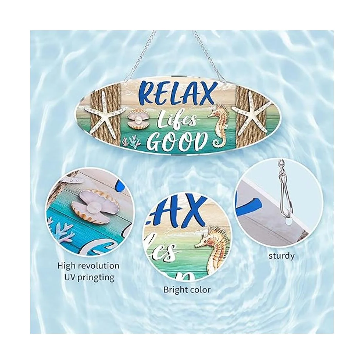 Lo que obtendrás: recibirás 1 placa de playa de metal, impresa con palabras de Relax Lifes Good y diseñada con concha, elementos de playa de estrella de mar, muy adecuada para la decoración del hogar