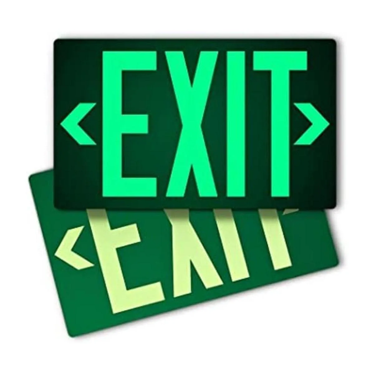 Visibilidad de 50 pies y sin fecha de caducidad Estos letreros de 12 x 7 pulgadas incluyen 2 flechas extraíbles con fondo verde que son visibles desde hasta 50 pies de distancia. El letrero que brilla en la oscuridad no tiene fecha de caducidad. Continúan absorbiendo la luz ambiental o la luz solar para cargar y luego liberan la luz cada vez más de 90 minutos en un ambiente oscuro durante más de 30 años.
