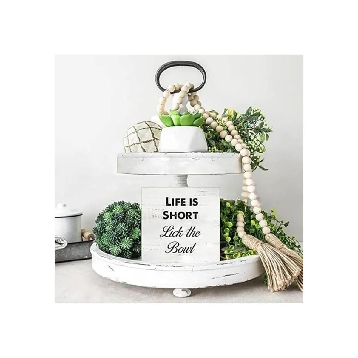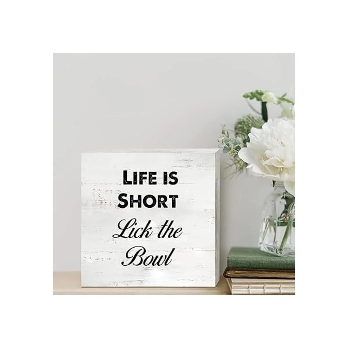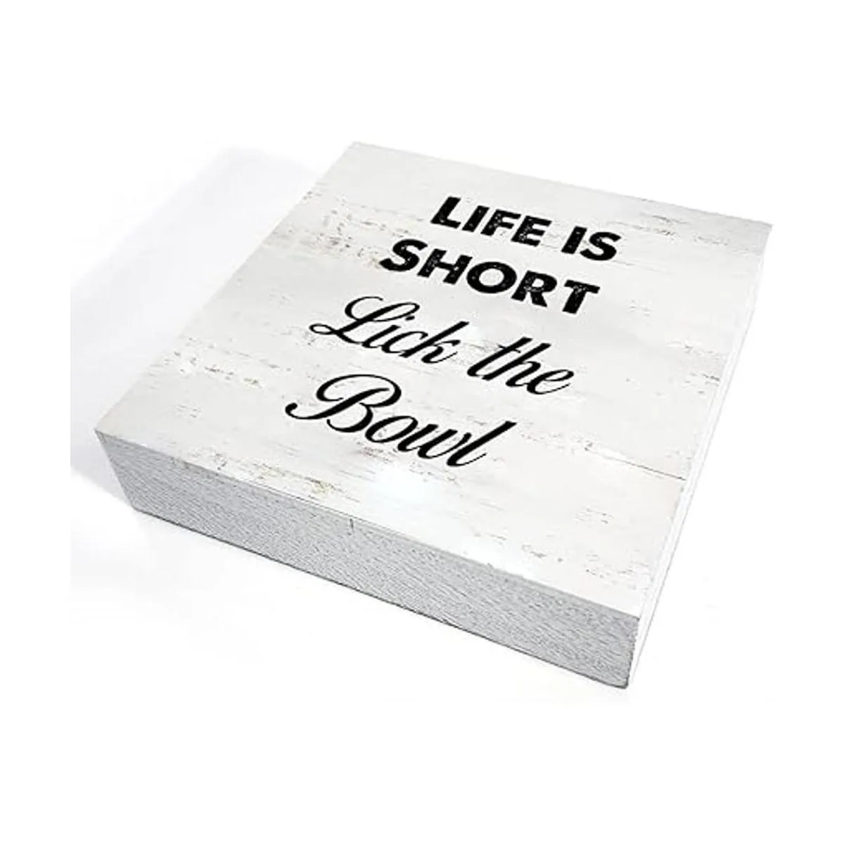 Letrero divertido de madera de cocina, decoración de escritorio, Life is Short Lick the Bowl, placa de bloque de madera con citas, letrero rústico para decoración de mesa del hogar, sala de estar, estante 5 x 5 pulgadas