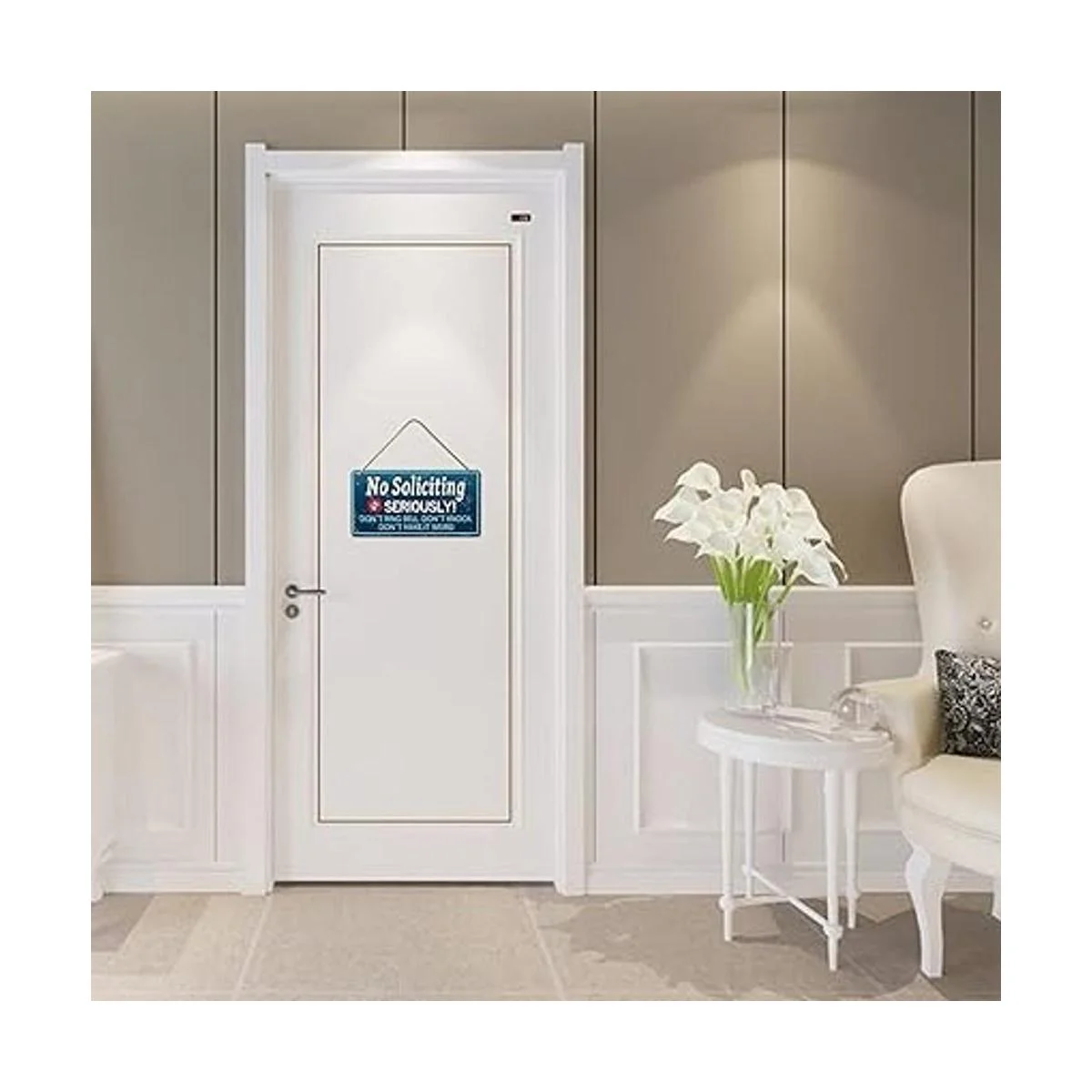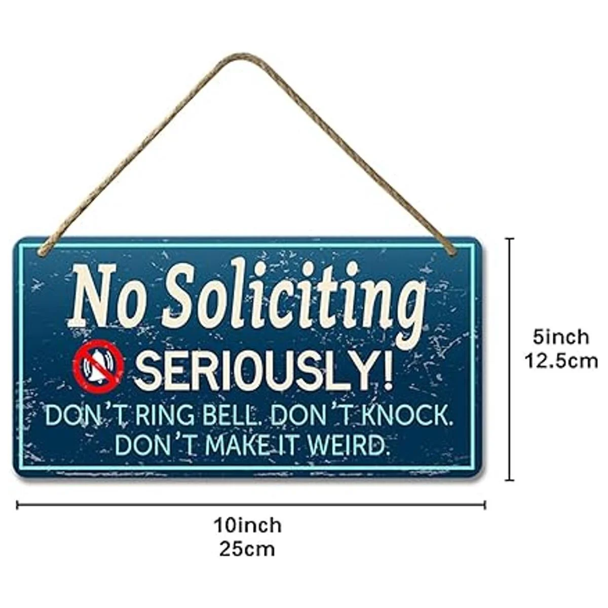 Letrero sin solicitudes para casa, divertidos letreros personalizados para puerta principal del hogar, no golpees ni suena el timbre, no lo hace extraño, 5 x 10 pulgadas
