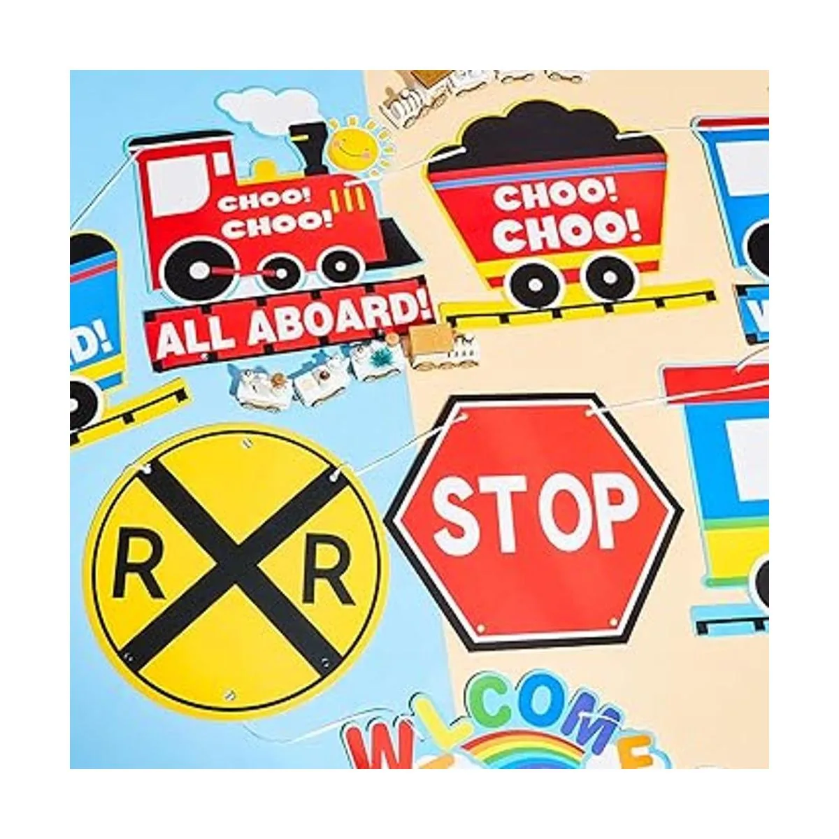 Ocasión aplicable: las decoraciones de ferrocarril son adecuadas como decoración para fiestas temáticas de tren, fiestas de cumpleaños, baby shower, etc. También pueden ser pancartas de bienvenida de porche en casa, escuela, aula, etc. Pueden decorar bien tu hogar