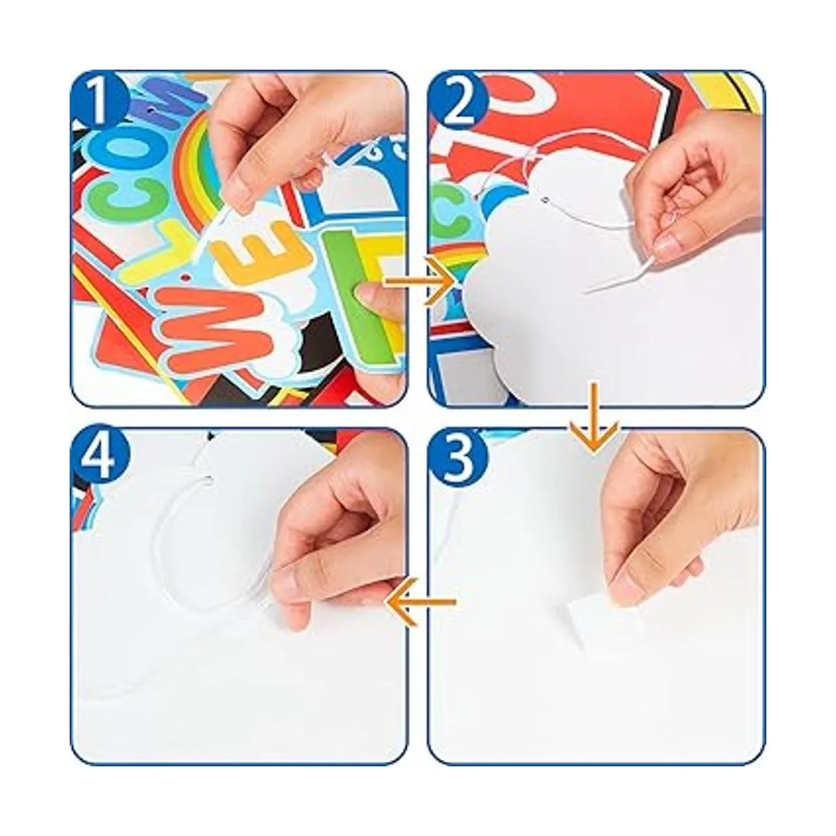 Fácil de instalar: estos cartones tienen 2 pequeños agujeros en la parte superior e inferior, que se pueden conectar con una cuerda; puedes disfrutar del proceso de bricolaje, y luego puedes colgarlo en cualquier lugar que desees, pegarlo en la pared, puerta, porche, etc. Te ayudará a decorar tu fiesta fácilmente, ahorrando tiempo y esfuerzo