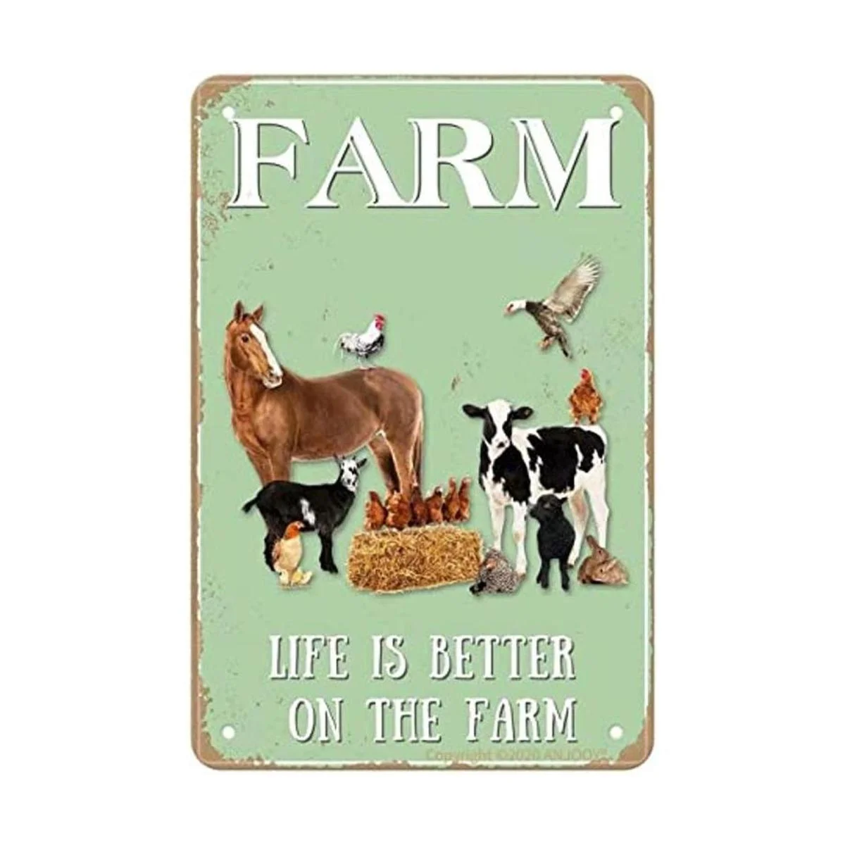 Letreros de metal vintage de estaño Farm Sweet Farm Life is Better on The Farm Placa de aluminio para café, hogar, bar, pub, garaje, hotel, jardín, decoración de pared