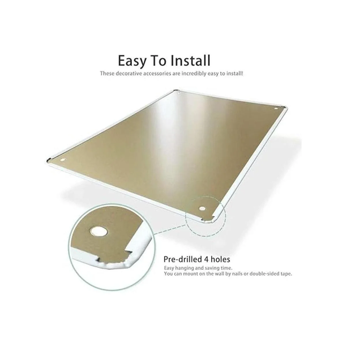 Fácil de instalar: estos accesorios decorativos son increíblemente fáciles de instalar. Los carteles de hojalata tienen 4 agujeros preperforados en cada esquina para colgar fácilmente y ahorrar tiempo. Puedes montarlo en la pared con clavos o cinta adhesiva de doble cara.