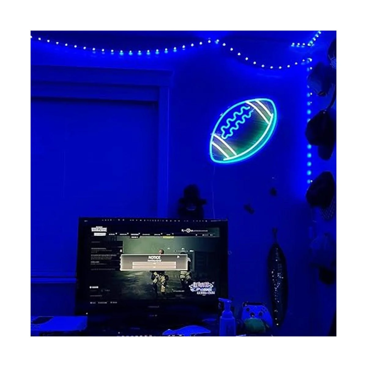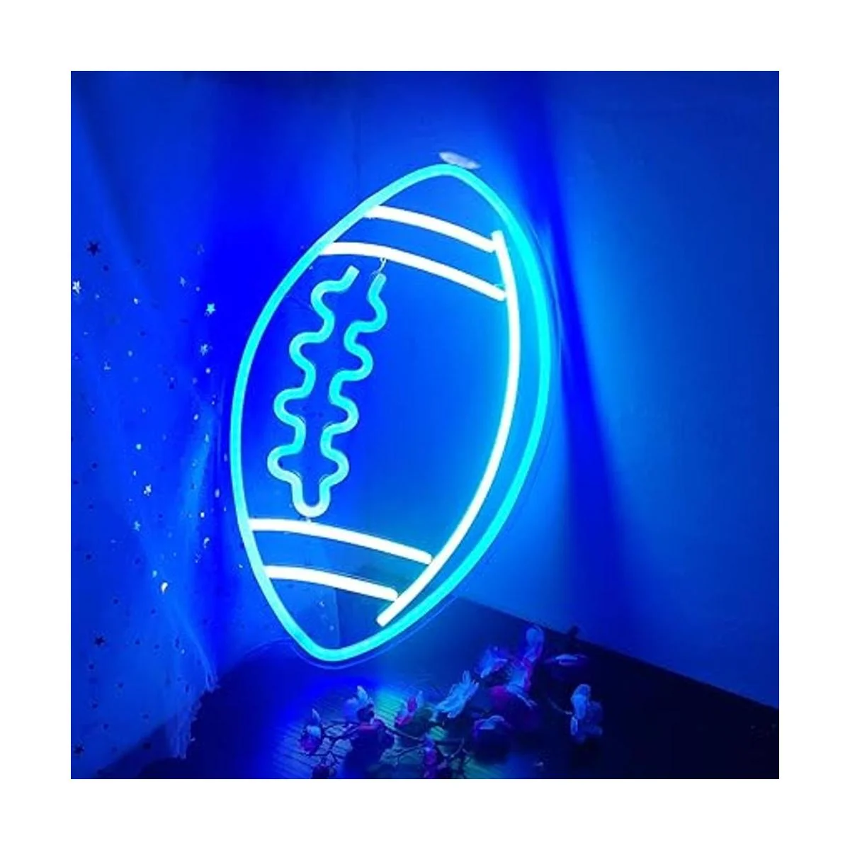 Letreros de neón azules con forma de fútbol para decoración de pared, luces de neón, letreros de luces de neón de 15 x 12 pulgadas, letrero con luz LED de neón para dormitorio, niños, sala de juegos de rugby, universidad, fiestas, regalos de Navidad
