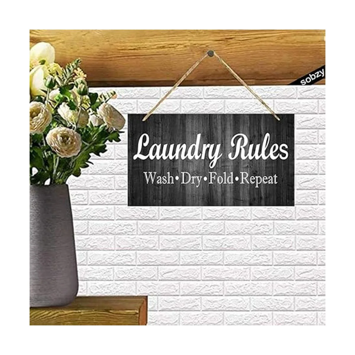 Letreros rústicos de reglas de lavandería, para lavar en seco, letreros de lavandería vintage, decoración de cuarto de baño, placa colgante de madera gris
