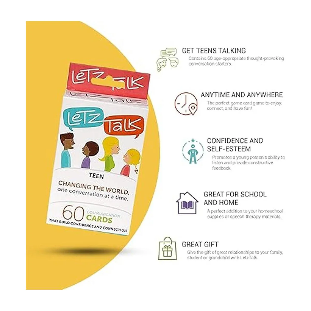 Haz que los adolescentes hablen: algunos días eres su mejor amigo y otros días, su peor enemigo. Puede ser un desafío entender el punto de vista de un adolescente y conectar con ellos. En lugar de respuestas de una sola palabra, las tarjetas de comunicación Letz Talk hacen preguntas que provoquen pensamientos, abiertas que inician conversaciones reales.