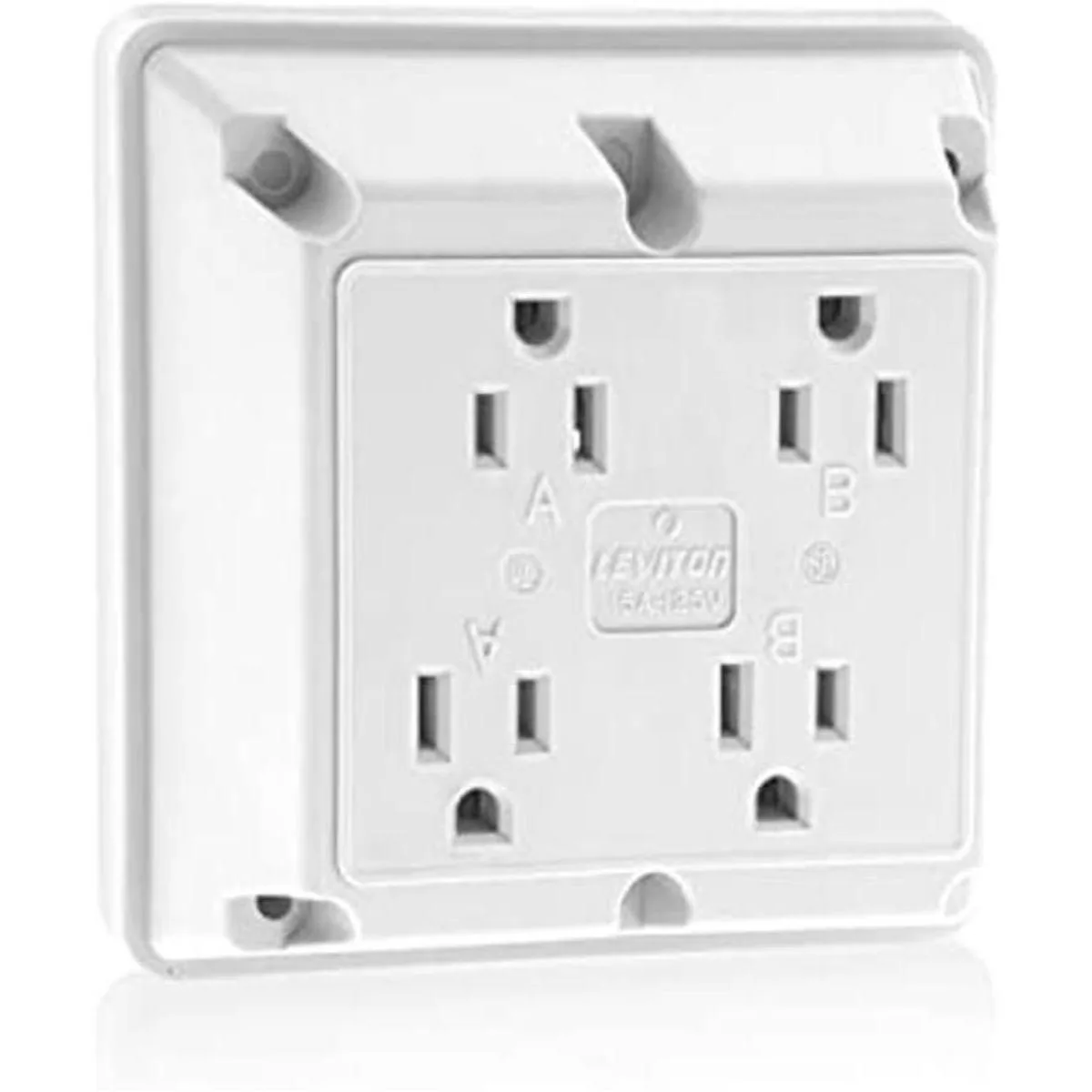 Leviton 1254W 15 Amp, 125 Voltios, Serie Industrial Grado Extra Pesado, Receptáculo 4 en 1, Hoja Recta, Tierra, Blanco