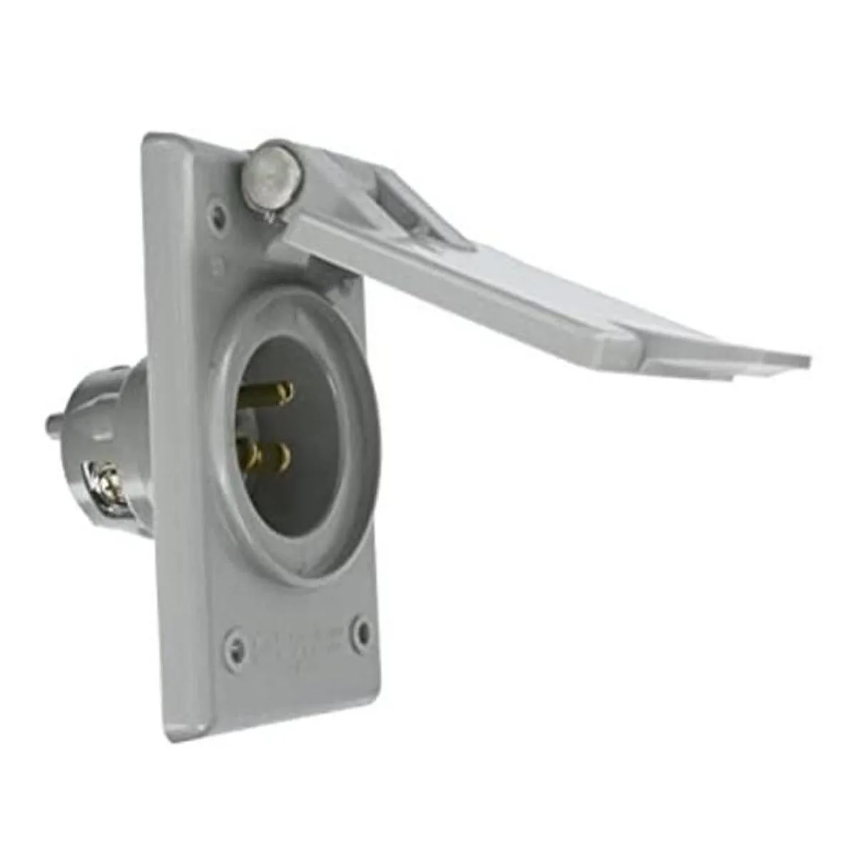 Leviton 5278CWP Receptáculo de entrada de alimentación macho con brida de hoja recta, 15 A, 125 V, cara de nailon, cuerpo y correa, gris