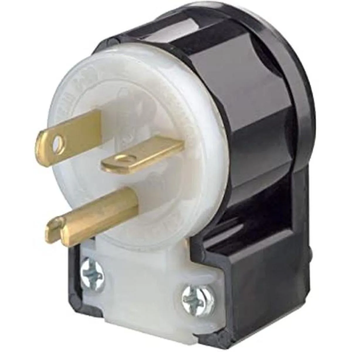 Leviton 5366CA 20 amperios, 125 voltios, hoja recta, enchufe, grado industrial, conexión a tierra, ángulo, negroblanco